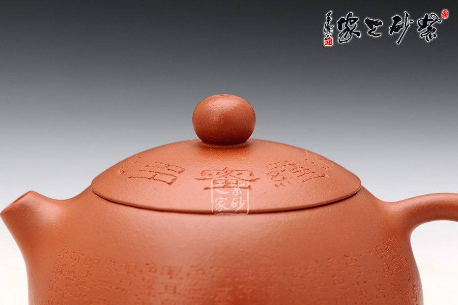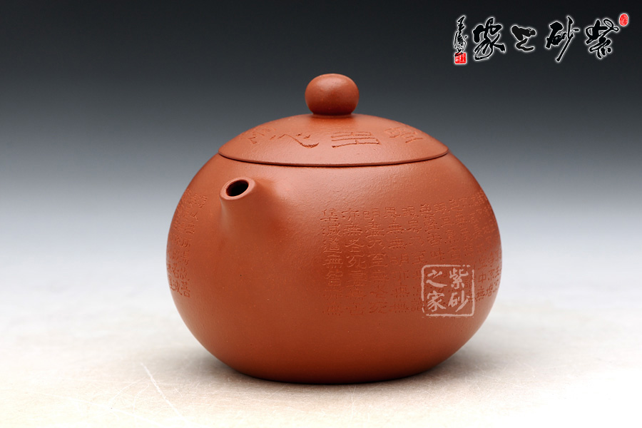 通體裝飾: 裝飾: 般若波羅蜜多心經(jīng) 裝飾者:王濤 裝飾內(nèi)容: 環(huán)刻《般若波羅蜜多心經(jīng)》小品壺西施,精巧可人令人愛不釋手,以此壺沖茗,取“茶禪一味”之意,茶中有禪機(jī),禪中有茶香