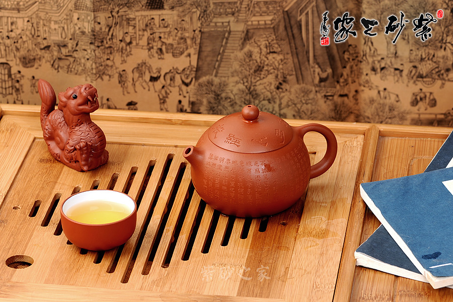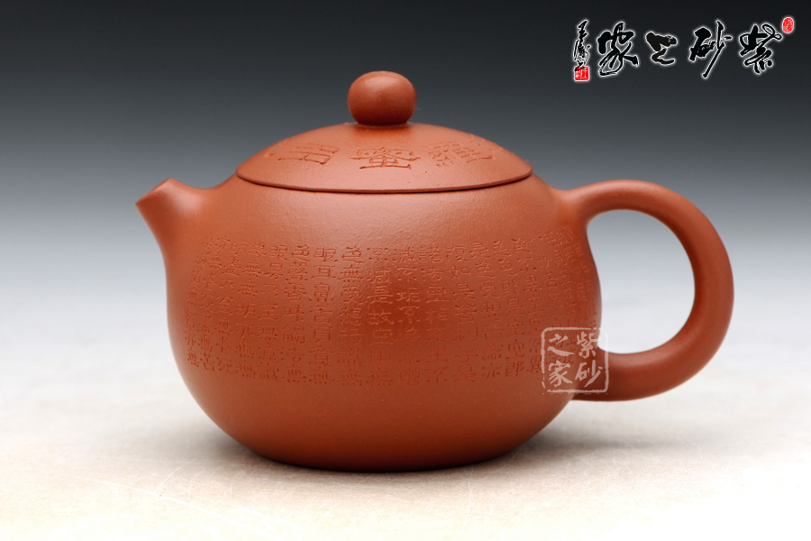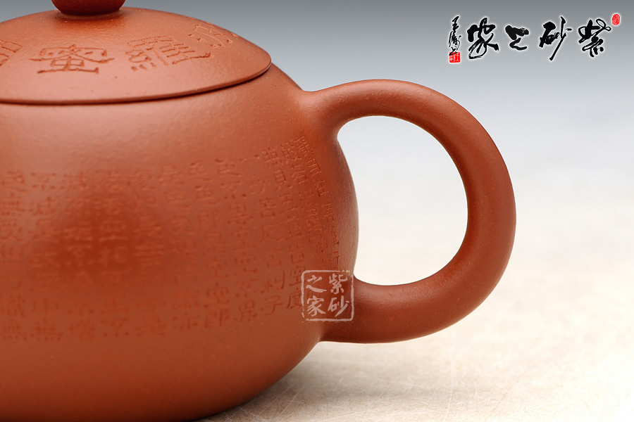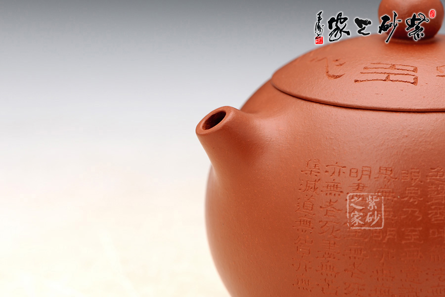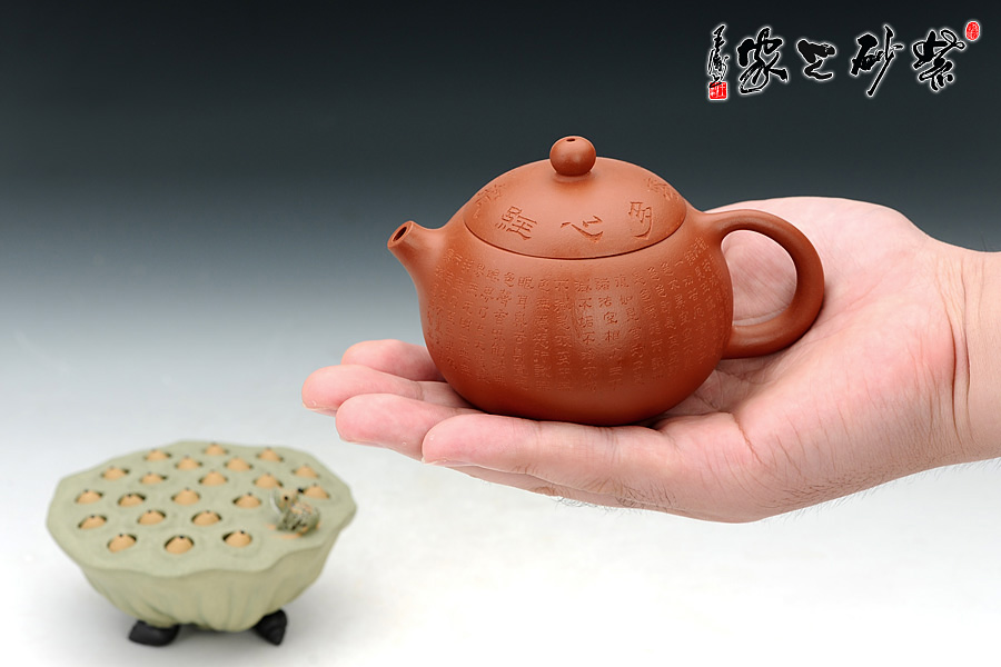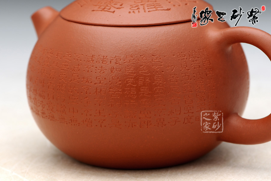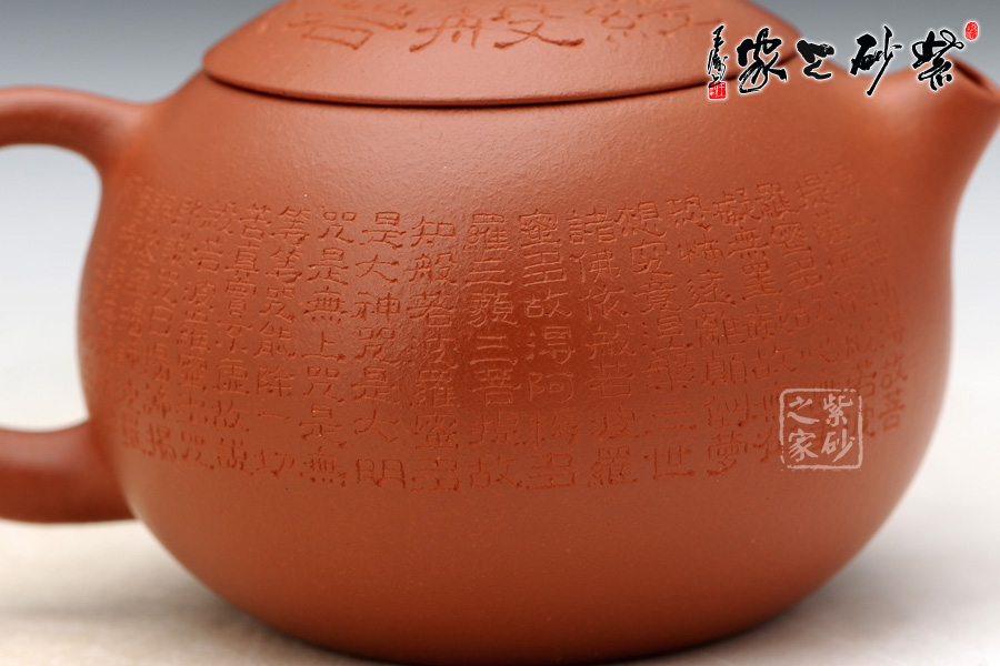 經(jīng)典器型的重新演繹,別有一番風(fēng)韻,環(huán)刻《般若波羅蜜多心經(jīng)》小品壺西施,精巧可人令人愛不釋手,以此壺沖茗,取“茶禪一味”之意,茶中有禪機(jī),禪中有茶香。