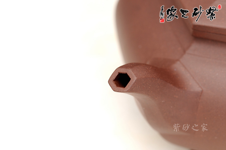 三彎流壺嘴,呈六方形,明接借口亦呈六方形