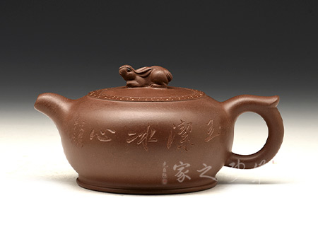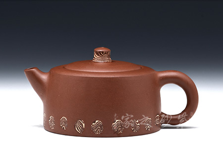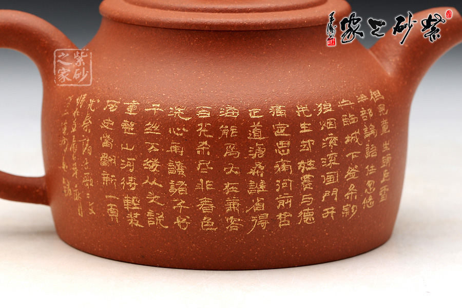 此壺以諸子百家為題材創(chuàng)作出的作品更具文化意韻,富有時(shí)代的特點(diǎn),此款作品做工精致,在傳統(tǒng)的基礎(chǔ)上加以創(chuàng)作,即大氣又不失端莊優(yōu)雅,圈把、一彎流與橋形壺鈕三點(diǎn)一線,比例協(xié)調(diào),精至的做工手工極佳。壺身刻繪“先秦諸子歌”,在藝術(shù)的基本上增添文化氣息,集自用與收藏于一體,妙!