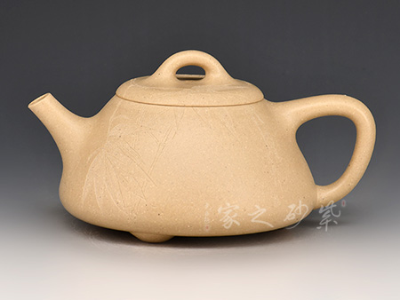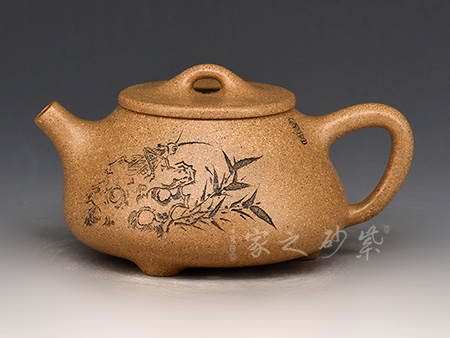 泥性:感甜嫩綿密,質(zhì)堅(jiān)而溫潤(rùn),呈近田黃色調(diào),為江蘇宜興趙莊山系朱泥礦~黃石黃之共生礦,經(jīng)挑揀練製而成,因含鐵量只達(dá)6%左右,致陶之后呈“金田黃色”。