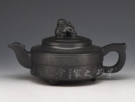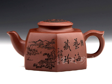 詩(shī)畫饋贈(zèng),領(lǐng)略文人之風(fēng):其作品多以厚重的文化底蘊(yùn)和精巧的刻繪工藝見(jiàn)長(zhǎng),這得益于其對(duì)書畫的極高造詣,一字一景耐人品評(píng),若能解其中之味,便能一語(yǔ)道破壺中天機(jī)。不時(shí) 有題詞或畫作贈(zèng)予壺友,互相交流學(xué)習(xí)。王濤之壺,文人之壺,茶香和著詩(shī)韻,乃是壺的精髓所在。近年來(lái)的紫砂作品傳統(tǒng)為主,力圖創(chuàng)新,具有鮮明的個(gè)性和文化特征。