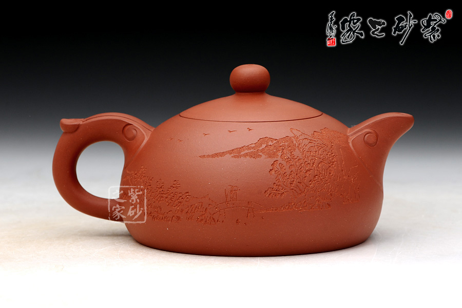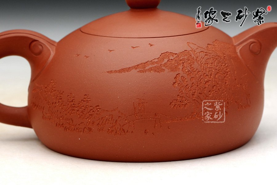 一件創(chuàng)新的作品,即要有取舍地保持傳統(tǒng)器形上的文化特色,又要能吸收其他藝術(shù)形式中可借鑒的長(zhǎng)處,例如此款款馭吾壺,有傳統(tǒng)器型的圓潤(rùn)飽滿,色澤溫和,卻在壺把與壺嘴的造型上采用新的造型,周?chē)汤L的紋飾彎曲有度,如同一條條圍繞壺身的絲帶,壺身刻繪增添文化氣韻,正面“人行山翠里,秋在水聲中”,描繪的是一幅優(yōu)美的風(fēng)景,壺的反面刻繪自然山水風(fēng)景的畫(huà)面,青山蒼翠,小橋流水,自然典雅又富有文化氣韻的作品怎么能不讓人喜愛(ài)呢!