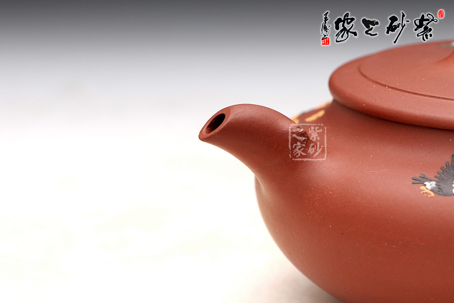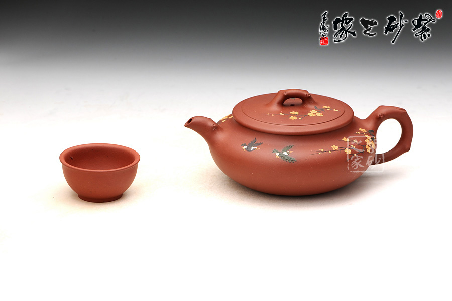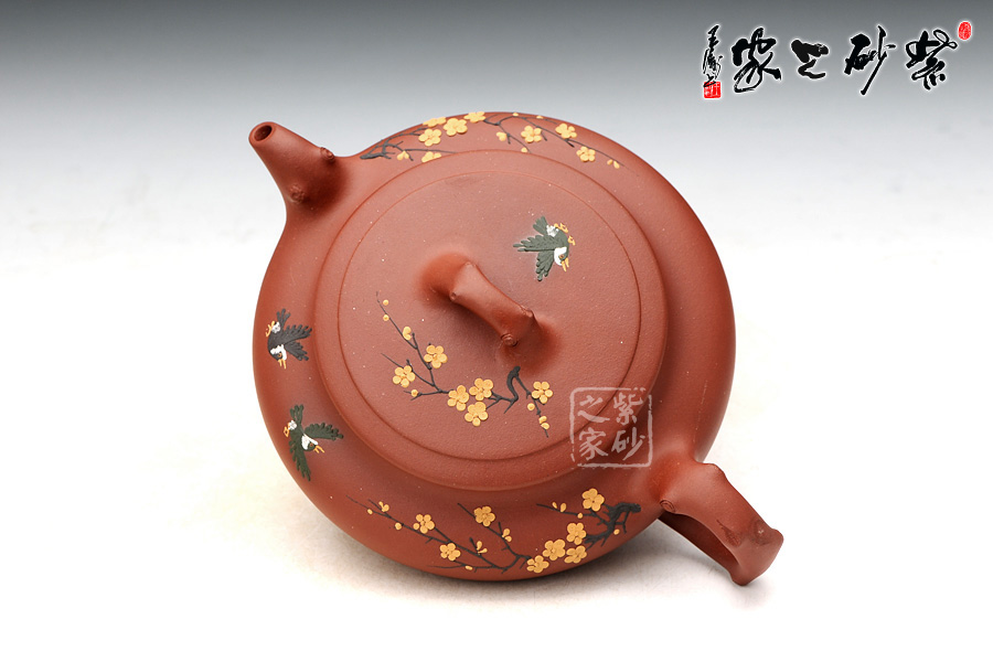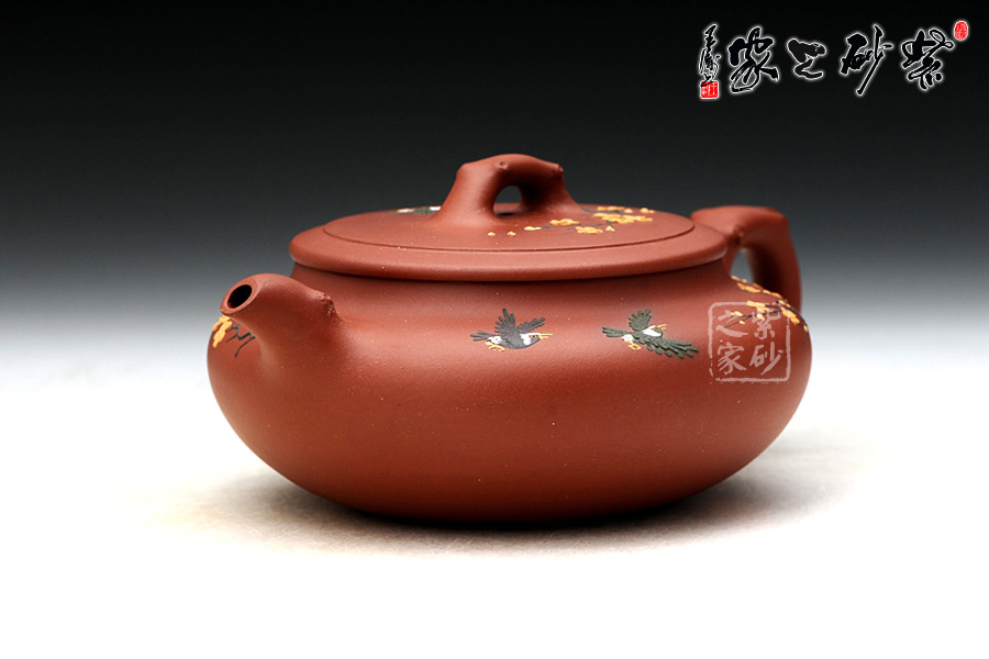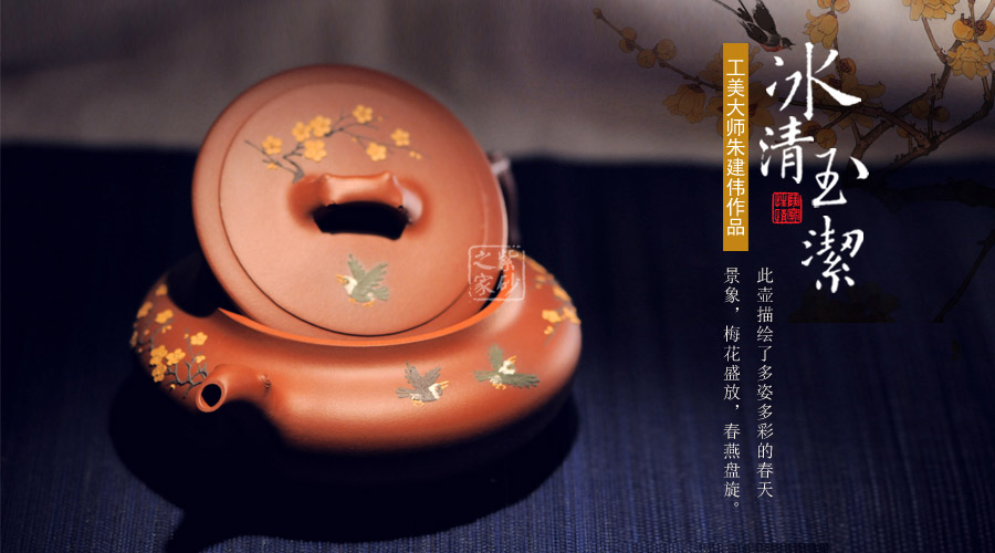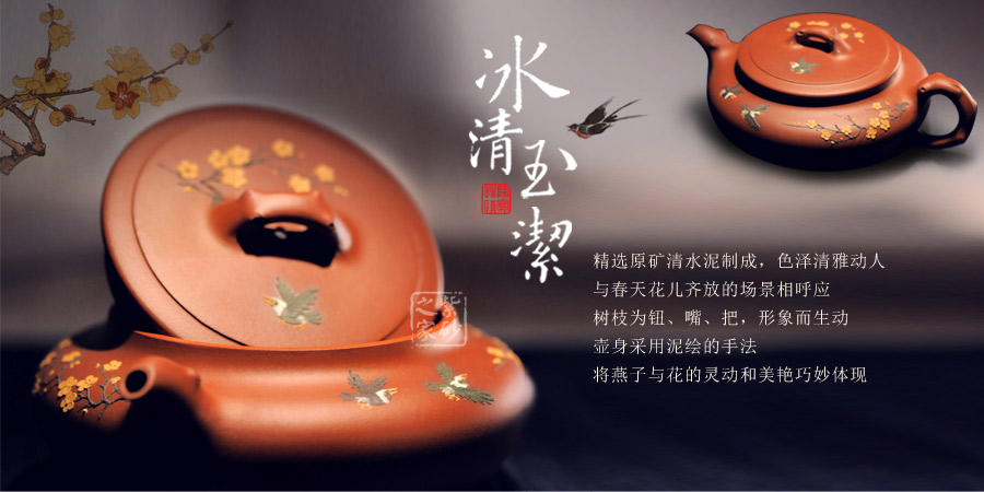 精選原礦清水泥制成,色澤清雅動人, 與春天花兒齊放的場景相呼應(yīng), 樹枝為鈕、嘴、把,形象而生動 ,壺身采用泥繪的手法 將燕子與花的靈動和美艷巧妙體現(xiàn)。