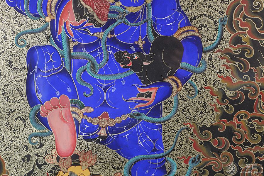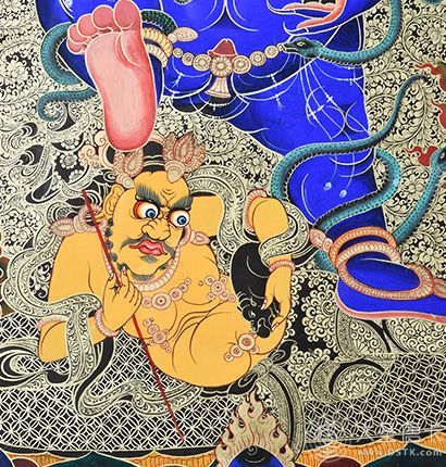 黑財神是由古印度神話中財神(梵名庫別拉)演化而來的。藏語稱他“贊布綠那布”,意即黑財神。黑財神藏名“藏拉那波”,乃是東方佛里的金剛不動佛。藏傳佛教財神之一。由古印度財神(梵名庫別拉)演化而來,藏語稱“贊布綠那布”,為了利益娑婆眾生解脫窮困之苦而化現(xiàn),在密宗認為,黑財神是五姓財神中施財立即見效的財神,甚至稱他為財神王。 主要功德為驅除所有違緣的糾纏,并使一切善愿都能心想事成,圓滿無礙。