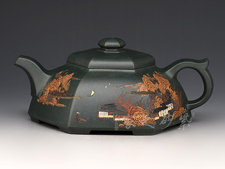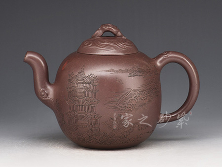 詩(shī)畫饋贈(zèng),領(lǐng)略文人之風(fēng):其作品多以厚重的文化底蘊(yùn)和精巧的刻繪工藝見長(zhǎng),這得益于其對(duì)書畫的極高造詣,一字一景耐人品評(píng),若能解其中之味,便能一語道破壺中天機(jī)。不時(shí) 有題詞或畫作贈(zèng)予壺友,互相交流學(xué)習(xí)。王濤之壺,文人之壺,茶香和著詩(shī)韻,乃是壺的精髓所在。近年來的紫砂作品傳統(tǒng)為主,力圖創(chuàng)新,具有鮮明的個(gè)性和文化特征。