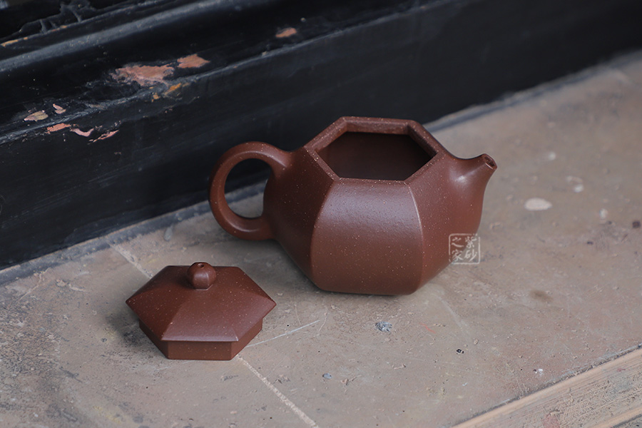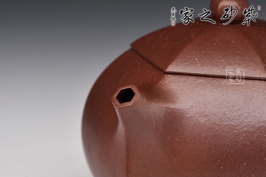 此壺不僅具有傳統(tǒng)西施的溫潤飽滿,還具有方器的挺括分明。形體豐韻,飽滿柔和,是壺中的美者,也是壺中雅韻深濃的一款。 壺身采用六方泥片拼接而成,形成圓中寓方,方中寓圓的特點,制作難度非常大,器型上柔和嫵媚,圓中有變,小而不弱,細(xì)而精致,骨肉亭勻。