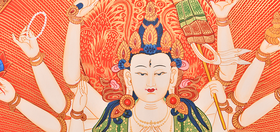 | 唐卡是歷史的瑰寶,現(xiàn)已被例入國(guó)家非物質(zhì)文化遺產(chǎn)名錄,得到了高度的重視和保護(hù)。同時(shí)由于顏料的珍稀、繪制周期長(zhǎng)、工藝復(fù)雜大大增強(qiáng)了其珍藏價(jià)值。一幅好的作品可遇不可求,近年來(lái)唐卡已成為收藏界炙手可熱的藏品。 | 唐卡的形式便于攜帶,其內(nèi)容體現(xiàn)了藏傳佛教的莊重、神圣、華貴,被稱為“移動(dòng)的佛像”。同時(shí)也是修行者積累善業(yè),追尋心靈的平靜與安寧的一個(gè)過(guò)程。 | 唐卡的內(nèi)容包羅萬(wàn)象,它以圖像的方式承載著藏族文化精髓,是藏族智慧的結(jié)晶,廣泛傳播了藏地的文化、歷史和宗教理論。 | 唐卡絢麗的色彩、流暢的線條、嚴(yán)謹(jǐn)?shù)慕Y(jié)構(gòu),都充滿著濃郁的高原和游牧民族風(fēng)情,無(wú)疑是難得的藝術(shù)珍品。值得一提的是唐卡繪制顏料全部為天然礦物顏料,畫(huà)面效果艷麗,可以保存千年而不變色。 |