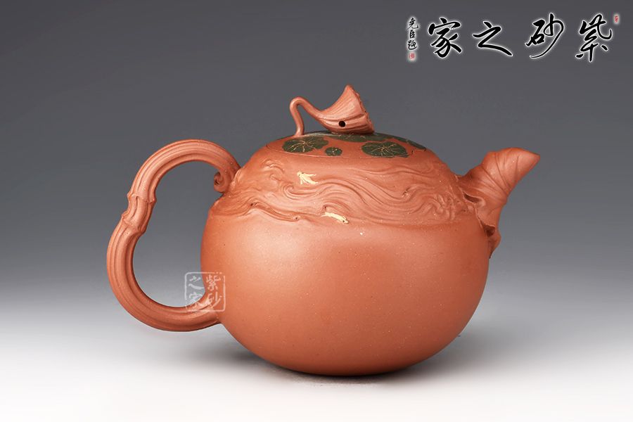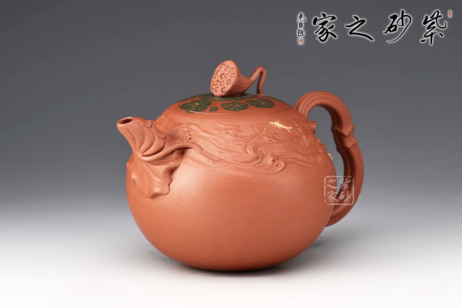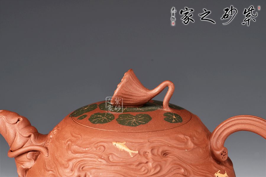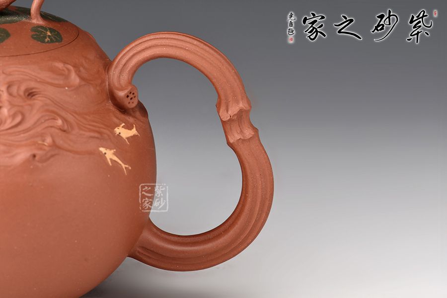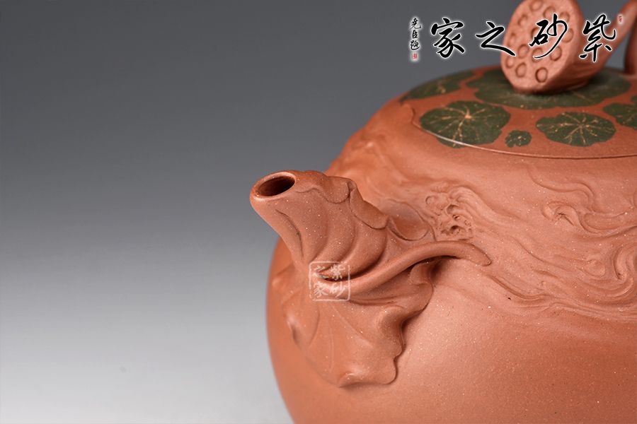 整壺精選原礦紫泥,全手工制作而成。壺身圓潤(rùn),筋紋勾勒出荷花的紋路,悄然開(kāi)放。壺嘴以荷葉為原型,真實(shí)富有韻味;壺把似荷花桿,與壺身相呼應(yīng)。壺蓋之上荷蓮呼應(yīng),形態(tài)逼真,栩栩如生,一枚蓮蓬悄悄冒出水面,充滿(mǎn)生機(jī)勃勃,產(chǎn)生了無(wú)限想象。