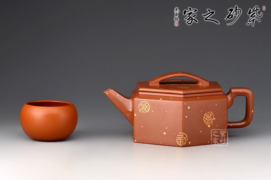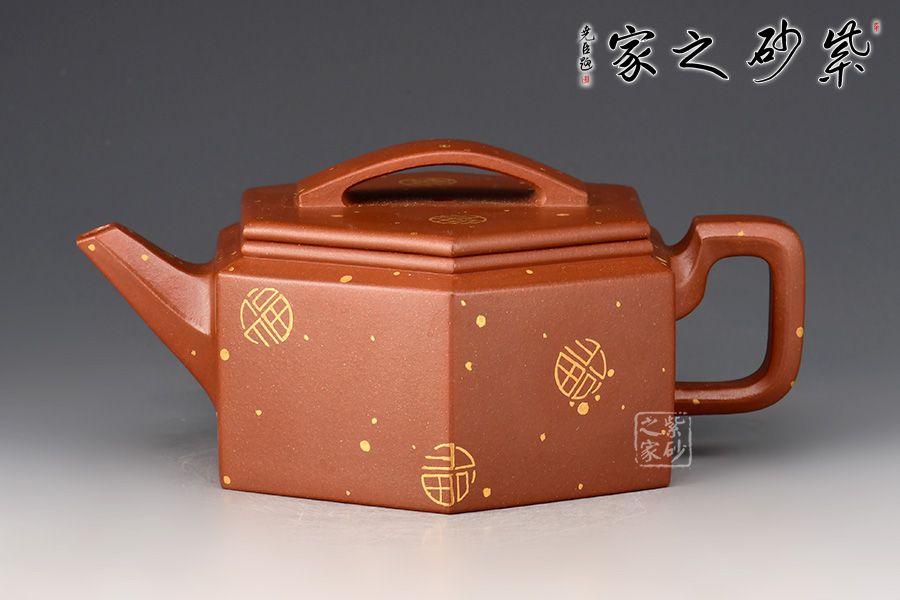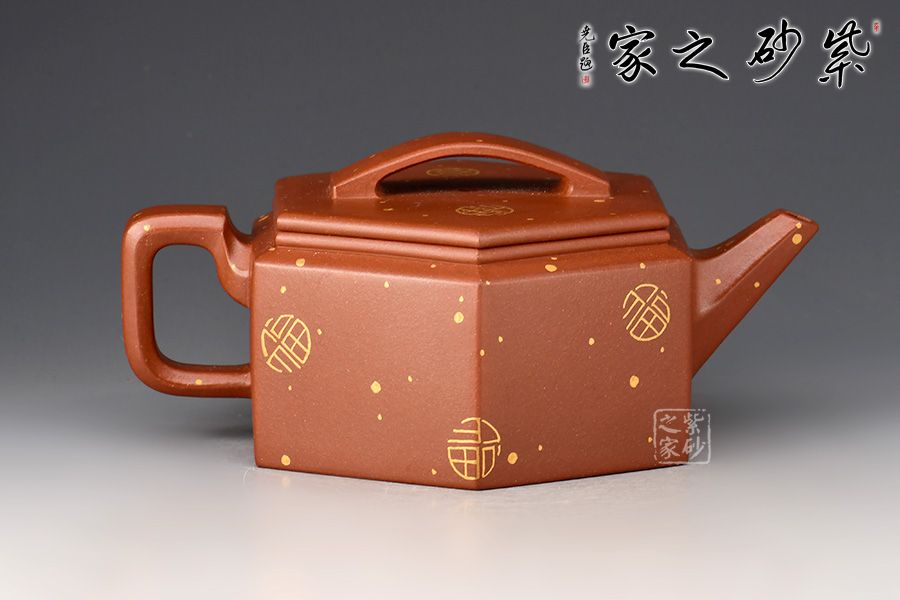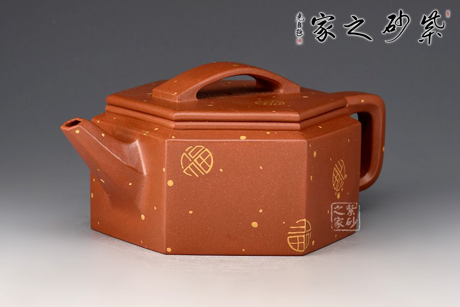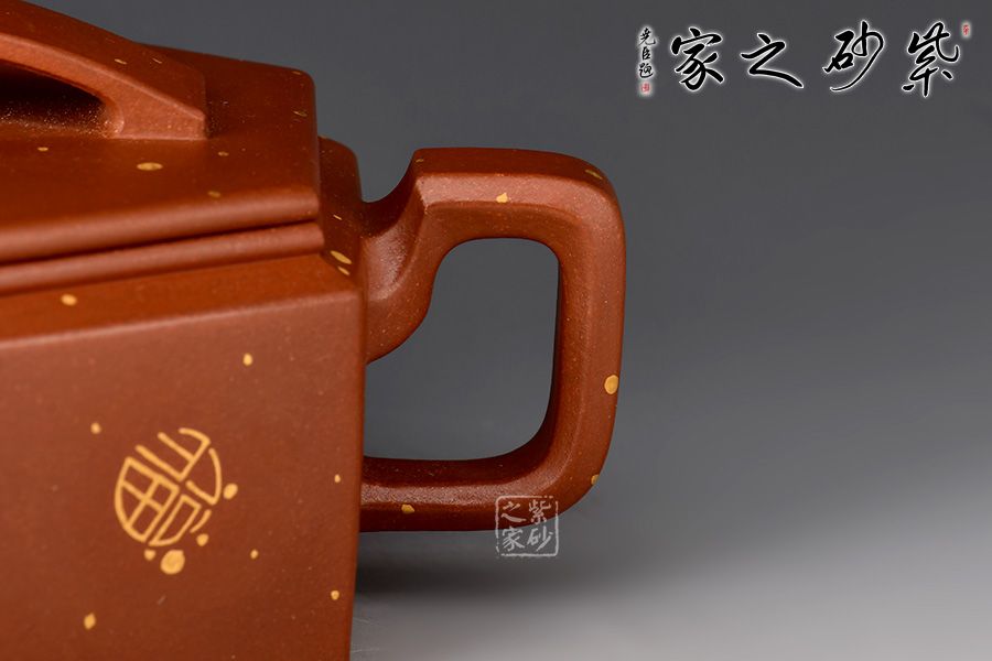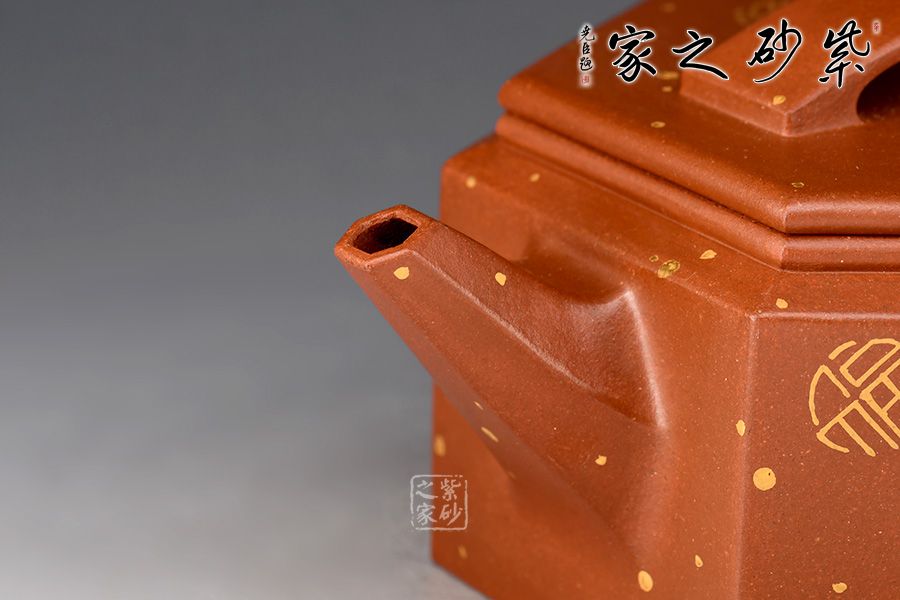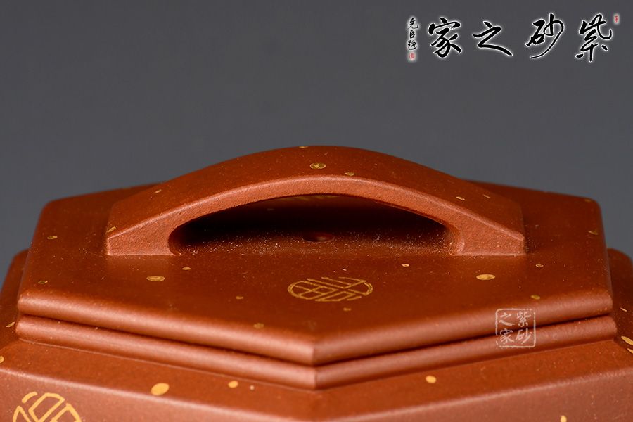 漢瓦六方為型,全手工制作,泥片銜接十分自然,毫無拼接痕跡。線條平穩(wěn)莊重,輪廓分明,棱角清晰,方器的挺括陽剛之氣盡顯。壺蓋之上漢瓦作鈕,彰顯古韻味;整器線條收放自如,于剛正中透出一股雅骨,壺身至壺蓋的層次感,又彰顯不俗功力。