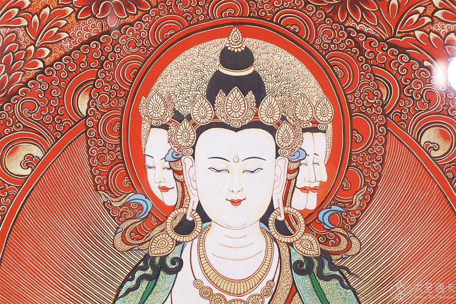 | 唐卡“師傅”開臉,筆路穩(wěn)重流暢。體現(xiàn)完美天人相,可見佛菩薩慈眉善目,賦予唐卡畫像生的靈氣。 | 細(xì)節(jié)決定品質(zhì),點睛之筆不到位影響整體美觀,五官比例不協(xié)調(diào),面目呆板,缺乏靈氣。 |