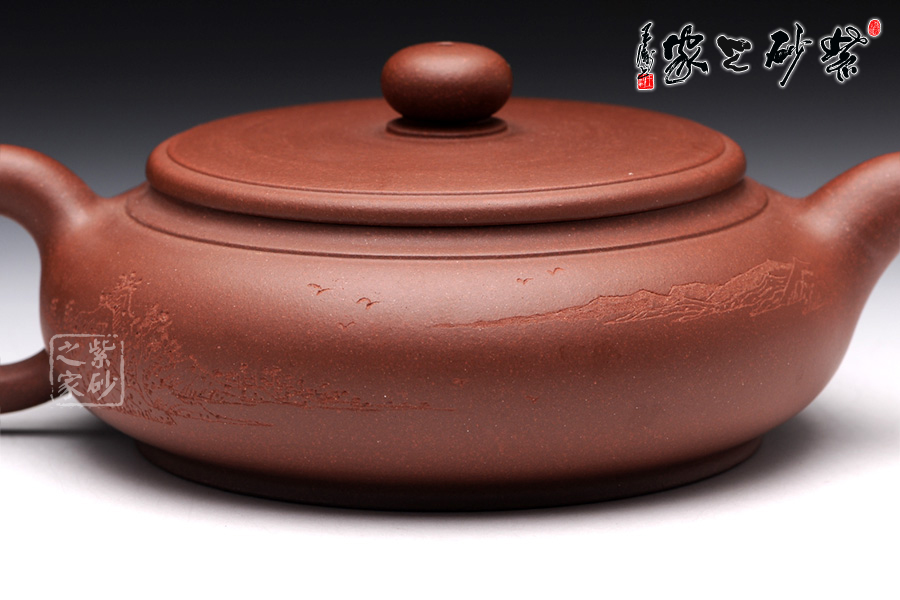 此壺名為蜀風(fēng),它是因蜀風(fēng)壺成型之難,難于上青天而得名。為此,該壺的完美成型足以見制壺者的工藝之精湛。精選原礦底槽清泥料制成的此壺,醇厚古穆,雅韻深沉,讓人遐想聯(lián)翩。有的會(huì)想起李白的詩(shī)句“蜀道之難,難于上青天!使人聽此凋朱顏。連峰去天不盈尺,枯松倒掛倚絕壁。飛湍瀑流爭(zhēng)喧豗,砯崖轉(zhuǎn)石萬(wàn)壑雷。” 有的也會(huì)想起蜀國(guó)一望無(wú)邊的富饒盆地。此壺正面刻繪的是“摘鮮焙芳”,反面刻繪是青山綠水,還有海鷗翩翩飛舞,該壺的神韻之悠然,令人嘆為觀止,值得珍藏!
