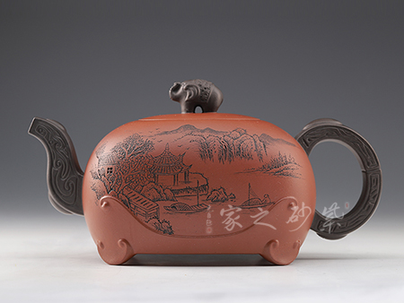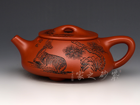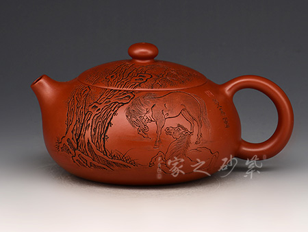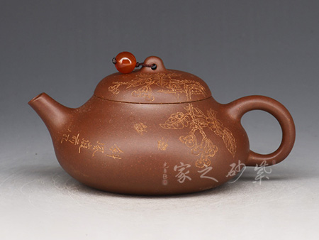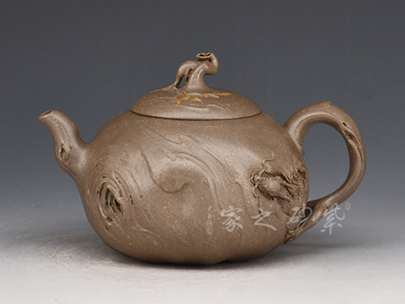 此壺以松為題材,結(jié)合光貨的制作,美觀挺拔,趣味高雅。