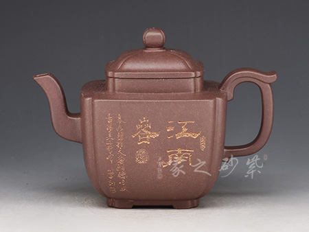 A面: 裝飾: 詩詞 裝飾者:顧紹培 裝飾內(nèi)容: “尊壺方圓得古意 清賞茗戰(zhàn)有淵心”