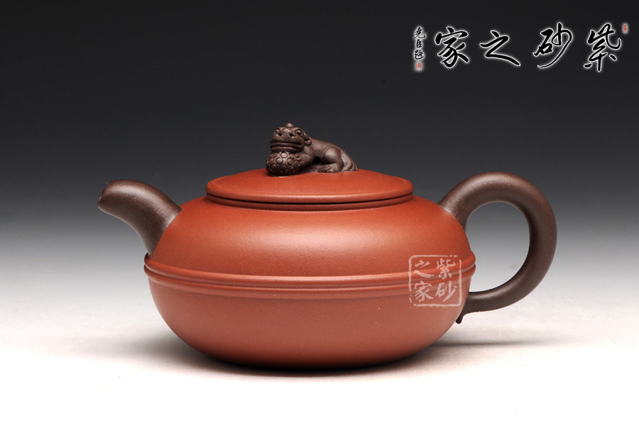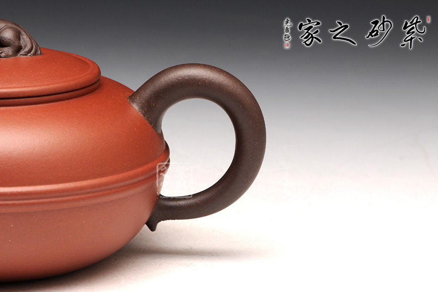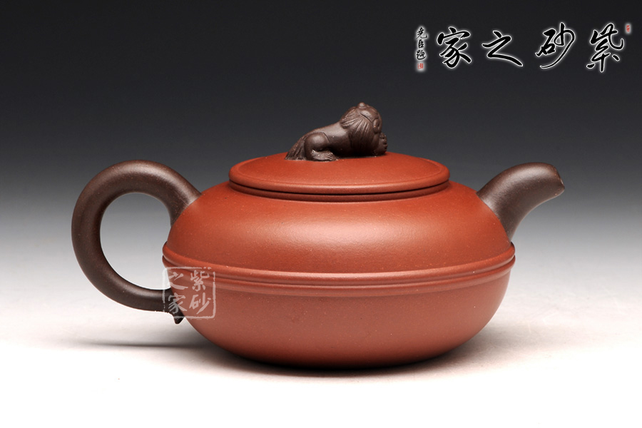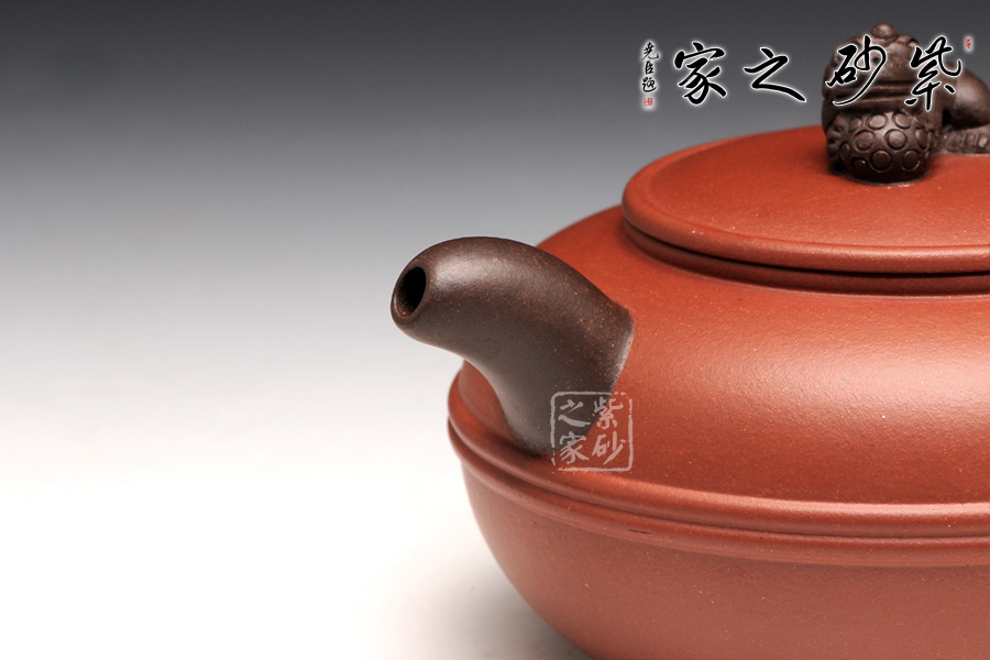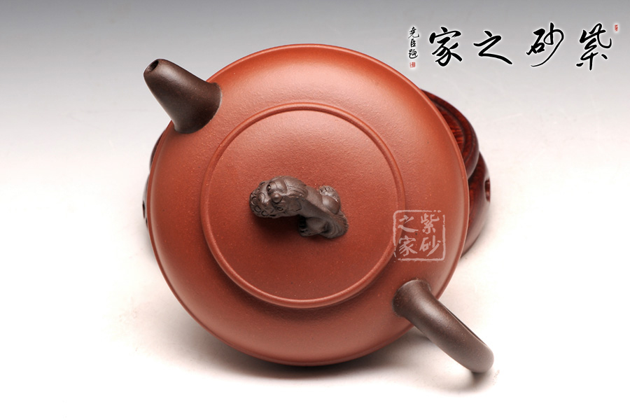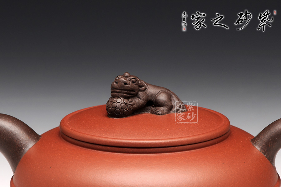 此壺造型清新雅致,扁圓圓融,端莊雅致,不失渾厚樸實(shí),質(zhì)拙中顯高意;流把與耳形端把造型簡(jiǎn)單藝美,壺把壺嘴以原礦黑泥制成,砂質(zhì)細(xì)膩隱逸;壺鈕造型別出心裁,一只瑞獅伏于壺蓋之上,帶有美好祥意。平壓蓋,和整器完美統(tǒng)一,更適把玩。