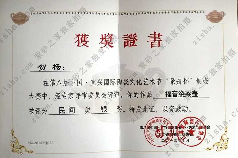 ▼ 第八屆中國(guó)宜興國(guó)際陶瓷文化藝術(shù)節(jié)“景舟杯”制壺大賽銀獎(jiǎng)!