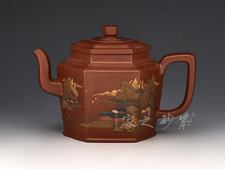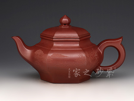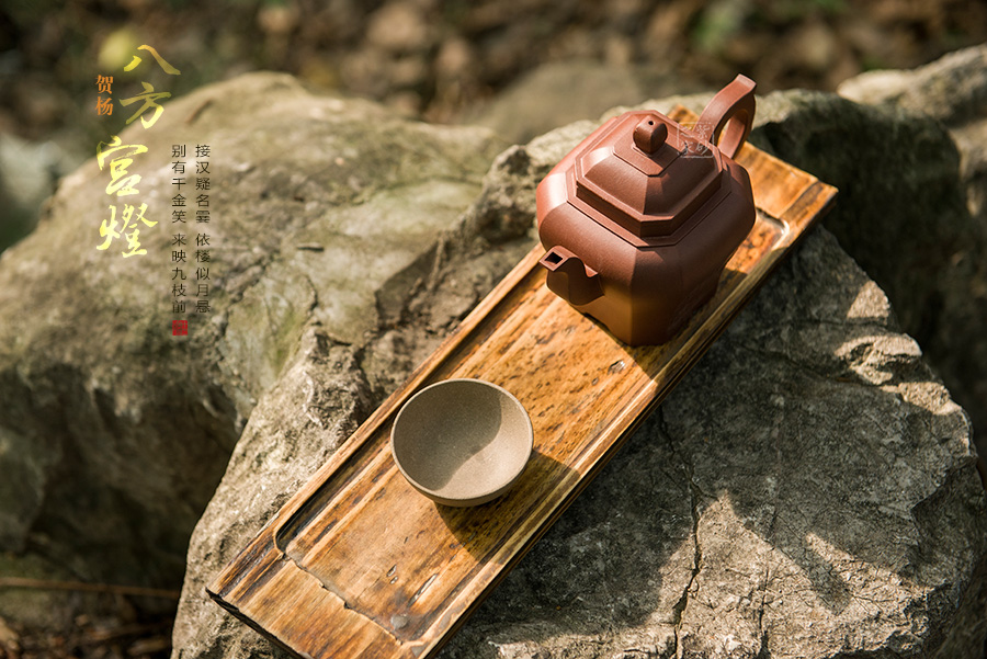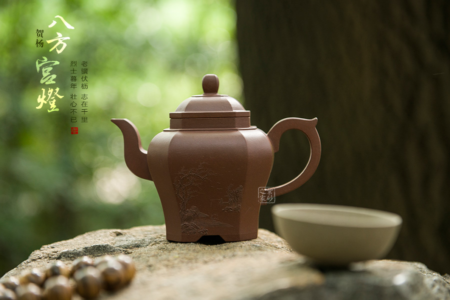 八方宮燈選用古代宮燈為造型,壺鈕、壺蓋、壺嘴、壺柄、壺身均采用方形造型,古典優(yōu)美,氣韻高雅。
