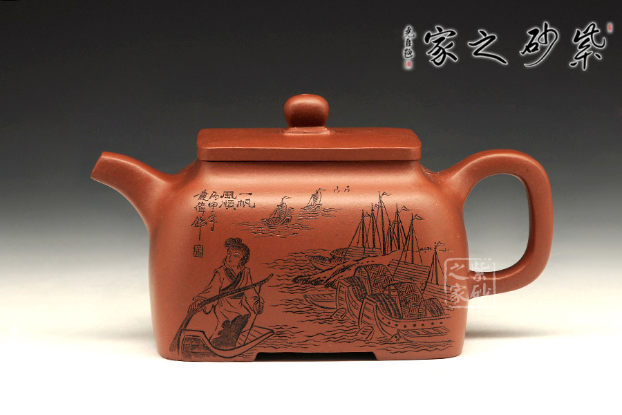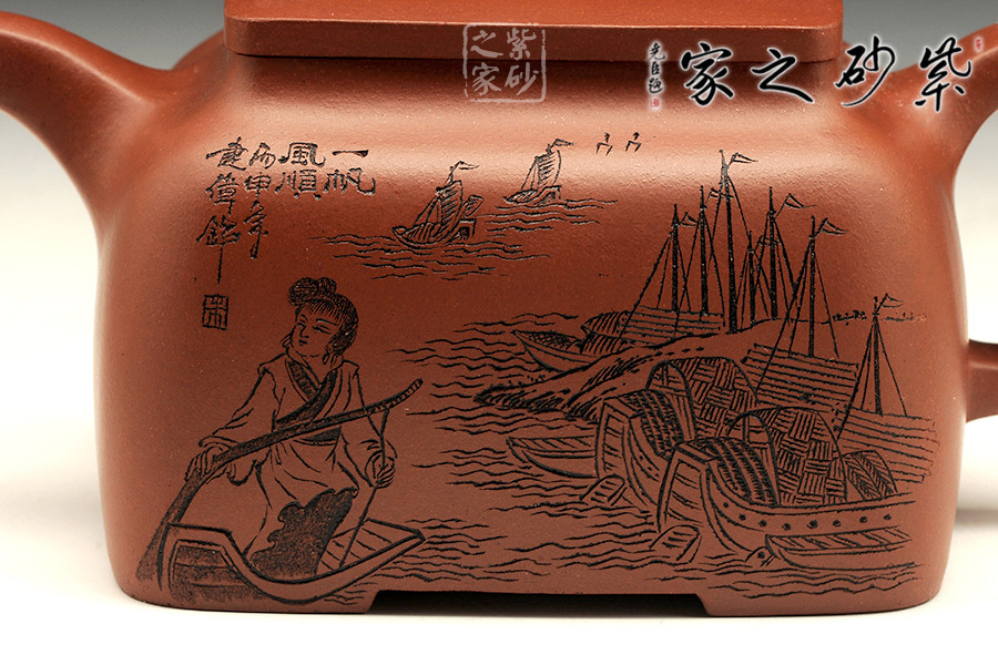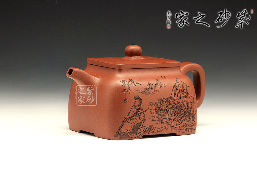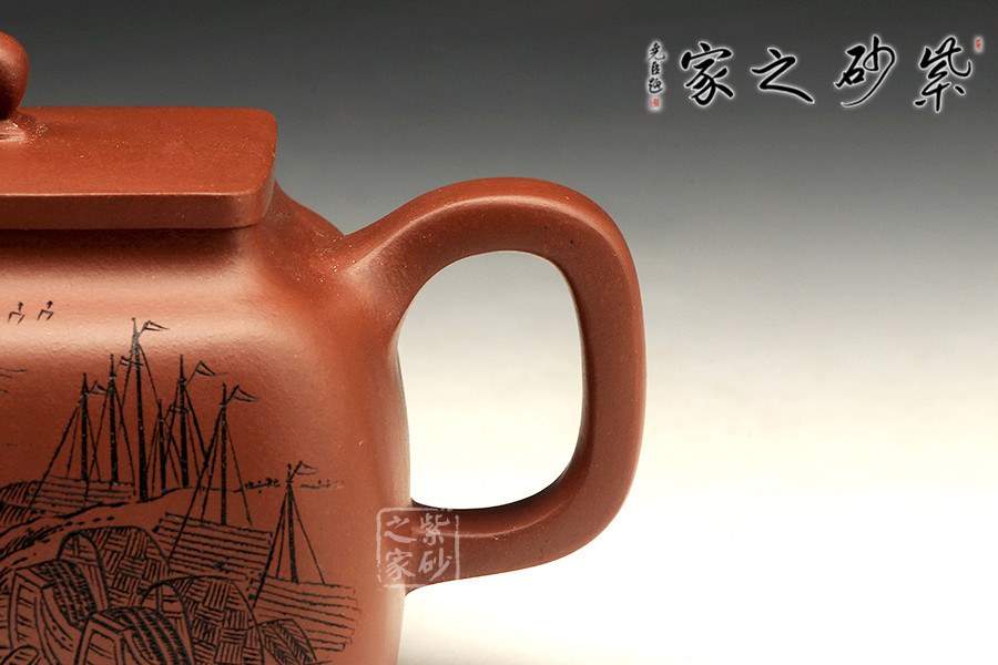 內(nèi)斂低調(diào)的色澤配上方正的壺型,給人一種經(jīng)歷世間的蒼涼,好似萬帆已過,余留出一份沉穩(wěn)與古樸。壺名為“一帆風順”,更有一份美好祝福平和之意。整壺線條筆挺英朗,四方的造型如剛毅的君子緩步而行,同時,壺把與壺嘴樣式與壺型契合,顯得端莊大氣。