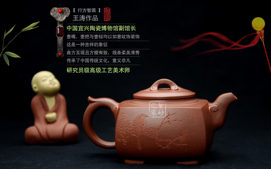 ↑ 壺嘴、壺把與壺鈕均以如意紋飾裝飾,這是一種吉祥的象征,曲方互現(xiàn)且方棱有致,線條柔美清秀,傳承了中國(guó)傳統(tǒng)文化,意義非凡