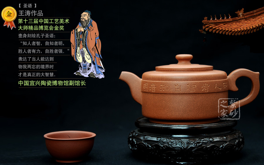 壺身刻繪孔子圣語(yǔ):“知人者智,自知者明,勝人者有力,自勝者強(qiáng)。”表達(dá)了當(dāng)人能達(dá)到物我兩忘的境界時(shí)才是真正的大智慧。