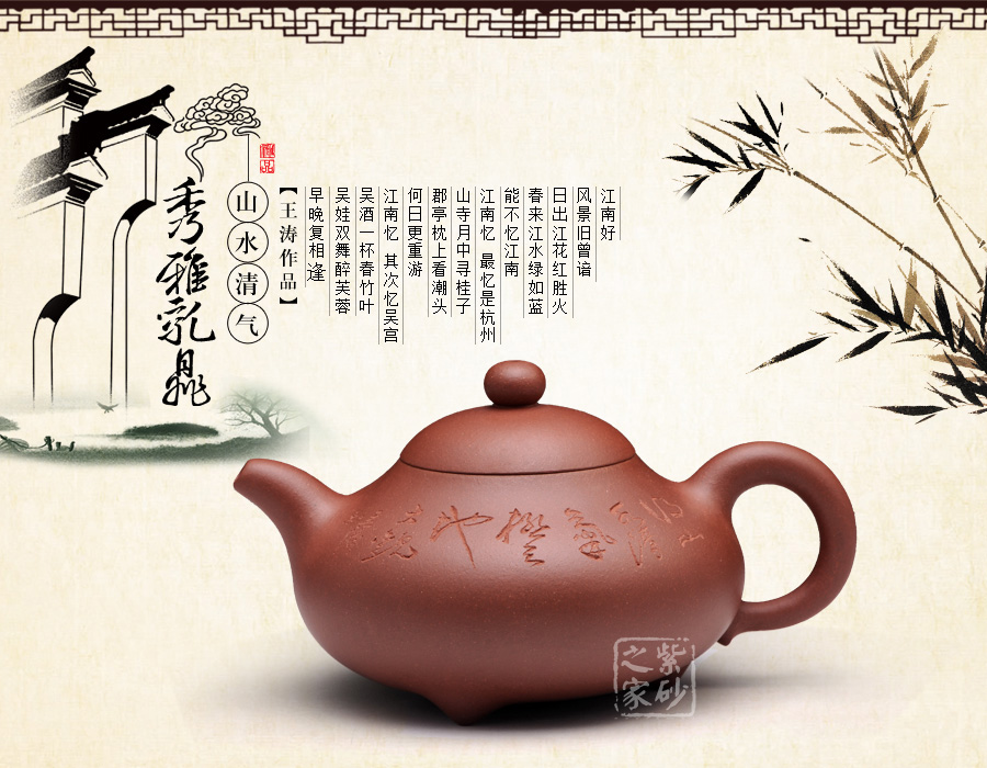 ↑ 壺身刻繪“林間風(fēng)雨有聲詩(shī)”, 是作者輕松灑脫心境的生動(dòng)表露, 超凡脫俗的氣韻 ,令人體味到“詩(shī)中有畫(huà),畫(huà)中有聲” 一種極美的境界。