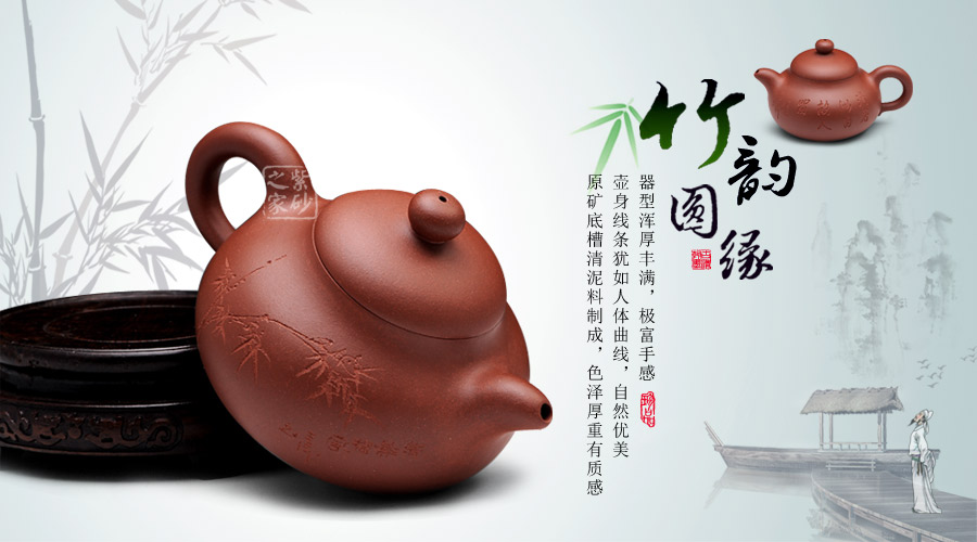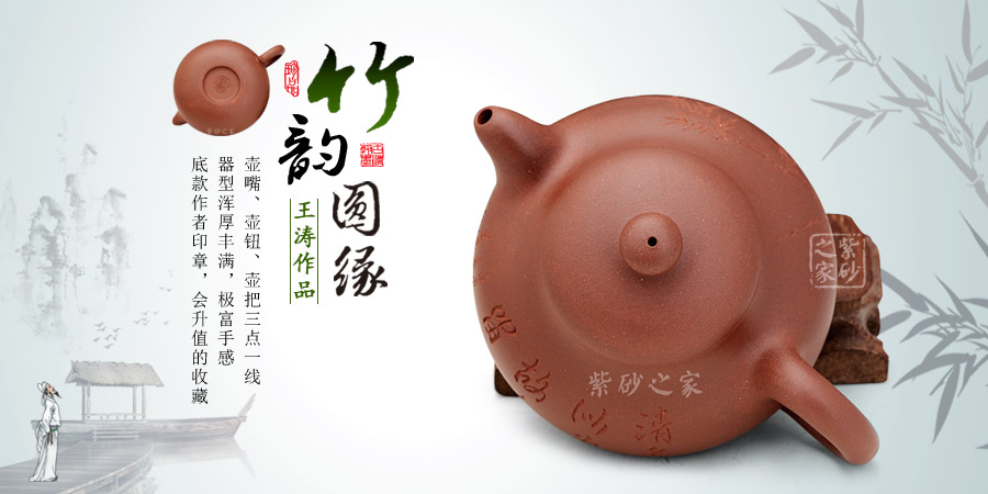 ↑ 圓緣壺壁薄而堅實,胎質(zhì)純而細膩,簡潔古樸,造型端莊大方,線條流暢自然。壺身刻繪“清香似為故人留”,清新優(yōu)雅。