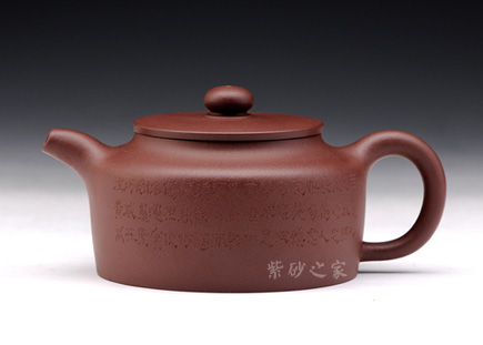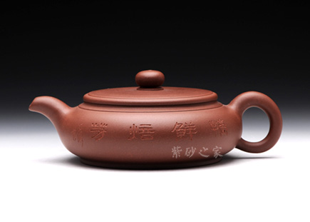 ↑ 該壺圓潤的造型驚世駭俗,飽滿的壺身,密實而協(xié)調(diào)的嵌蓋將圓潤的壺身圓滿意味襯托得淋漓盡致,小小的寶珠壺鈕強調(diào)壺身的珠圓玉潤。