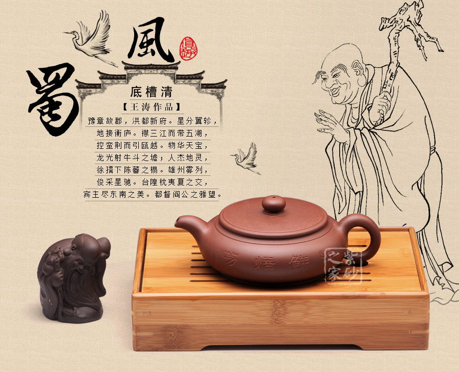 ↑ 壺身刻繪“俱往矣,數(shù)風(fēng)流人物,還看今朝”,取自毛主席著名詩詞《沁園春 雪》,雄渾霸氣躍然壺上,采用繁體隸書素刻,更顯古韻幽香。