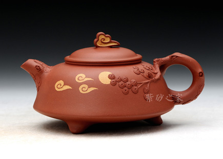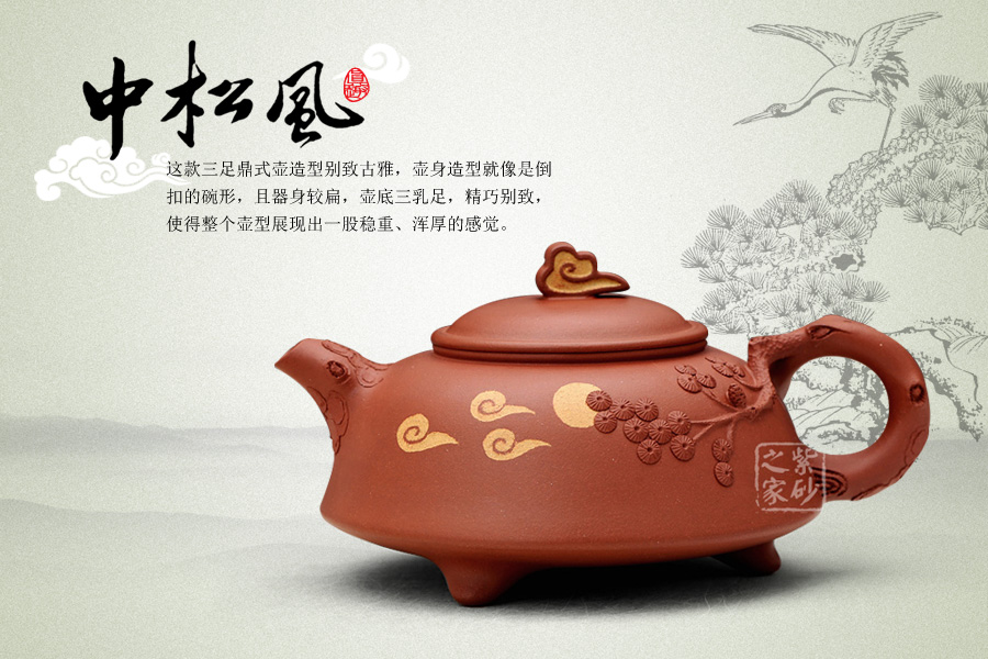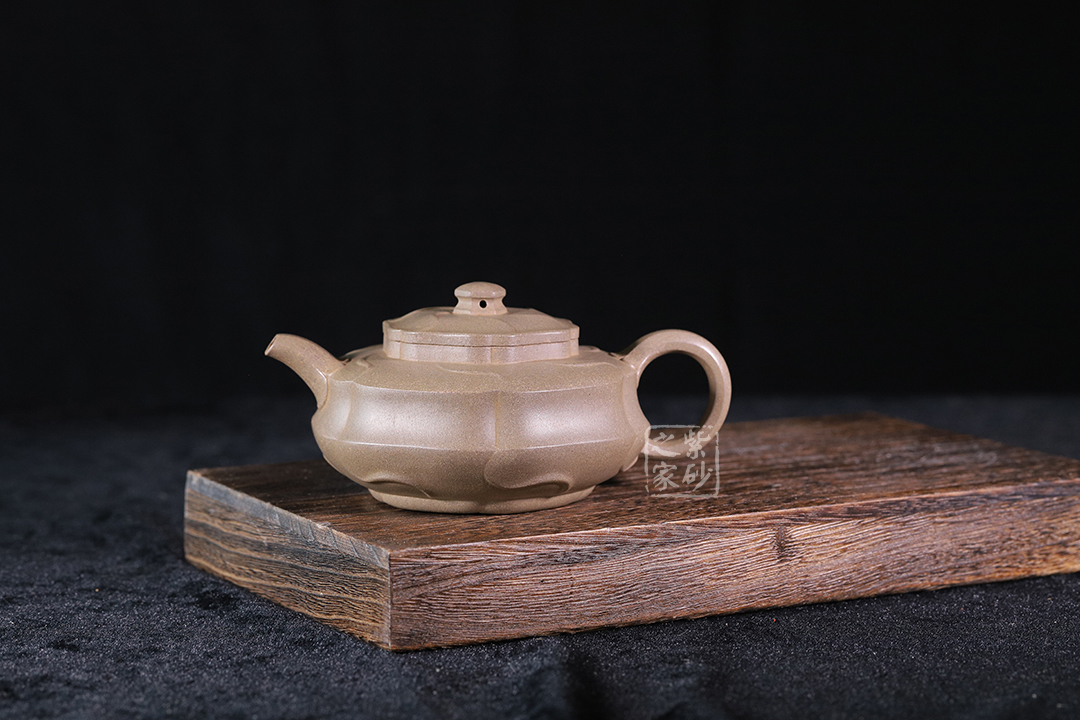 這款三足鼎式壺造型別致古雅,壺身造型就像是倒扣的碗形,且器身較扁,壺底三乳足,精巧別致,使得整個(gè)壺型展現(xiàn)出一股穩(wěn)重、渾厚的感覺(jué)。