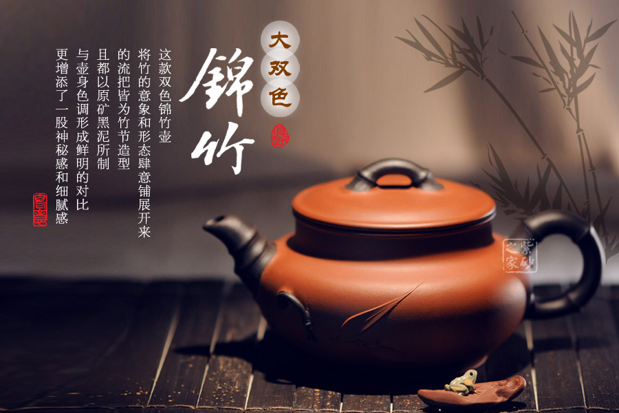 這款雙色錦竹壺 將竹的意象和形態(tài)肆意鋪展開(kāi)來(lái), 的流把皆為竹節(jié)造型, 且都以原礦黑泥所制 ,與壺身色調(diào)形成鮮明的對(duì)比 ,更增添了一股神秘感和細(xì)膩感。