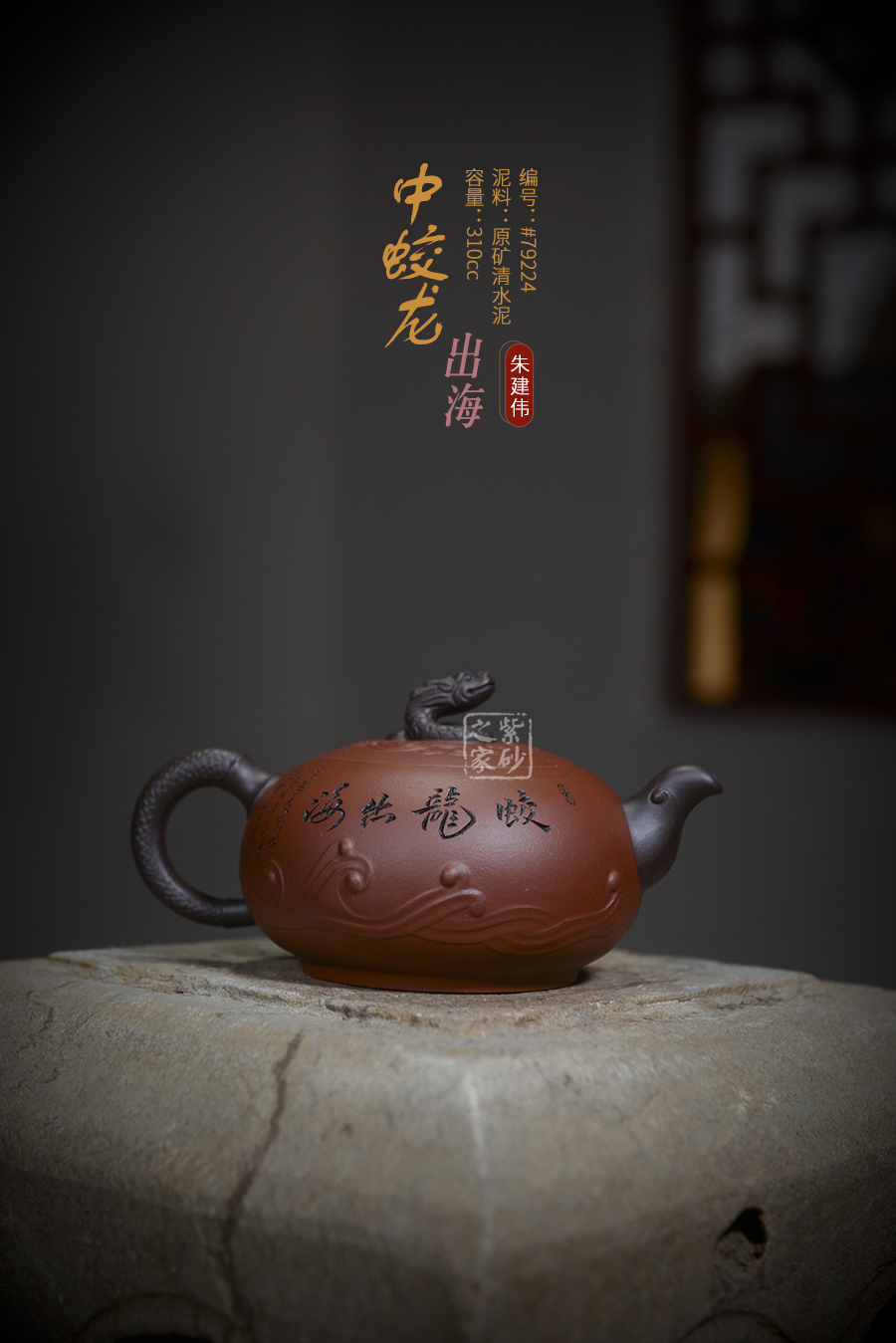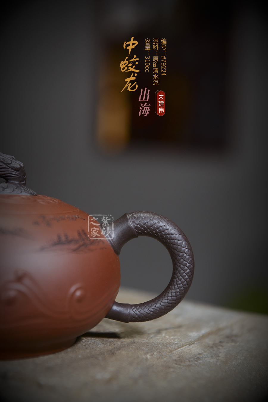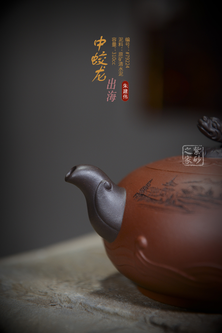 作品線條流暢蜿蜒,匠心獨運,采用的是原礦朱泥精工細作而成,色澤紅中透潤,泥質(zhì)柔嫩細膩,觸手生溫,