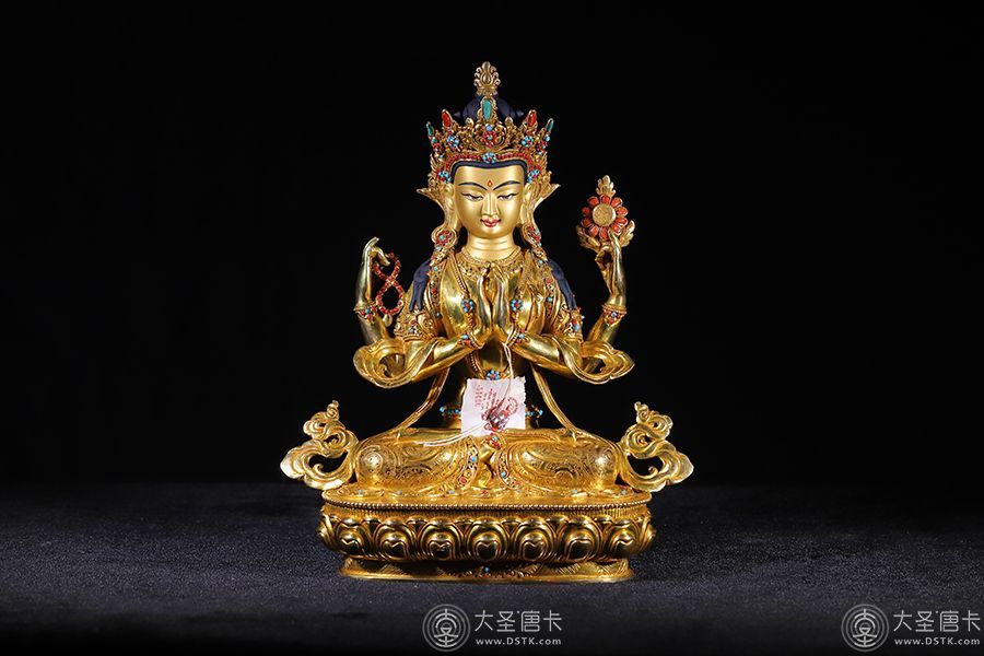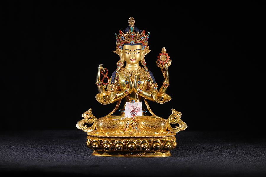 尼泊爾sugat大師鎏金四臂觀音33公分[140653] / *cm