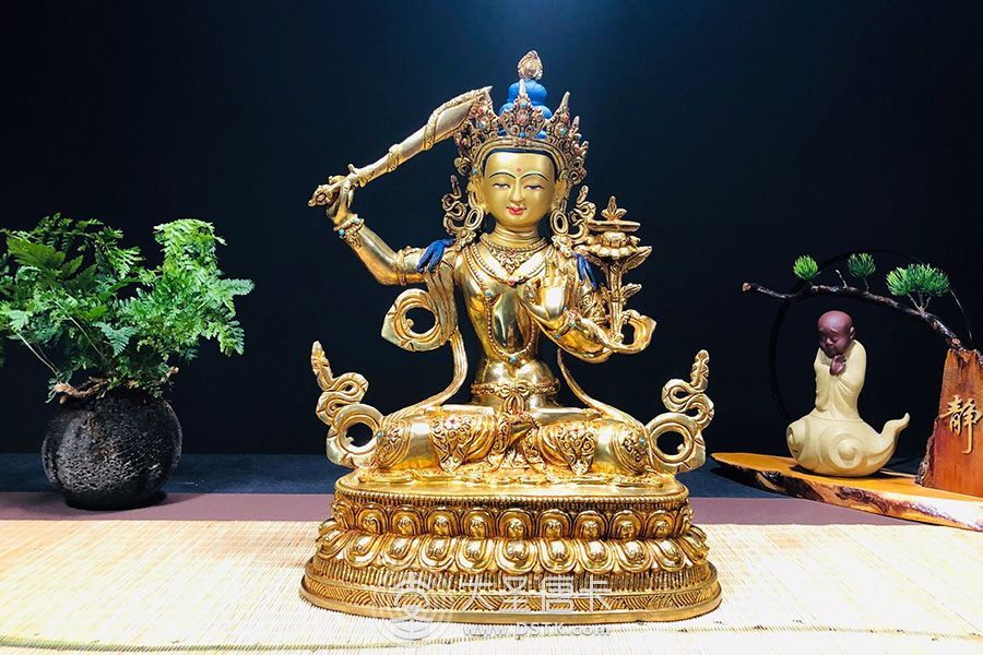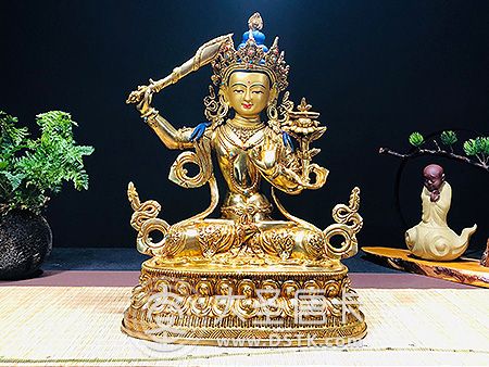 文殊菩薩鎏金33cm[71423] 大圣唐卡/ / cc