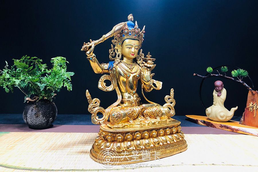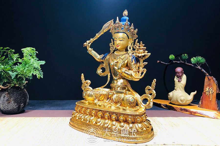文殊菩薩鎏金33cm 作者:大圣唐卡 / 編號:71423 /