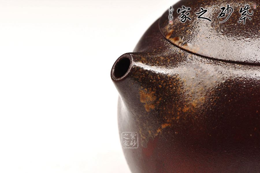特點:質感綿密、緊實細緻,持之扎實沉重、紅潤豔麗,泥中極品,無以倫比;泥胚含少許原礦顆粒,沖淋熱水后色變極大,呈紅中帶紫,養(yǎng)壺易現(xiàn)“包漿”之美。