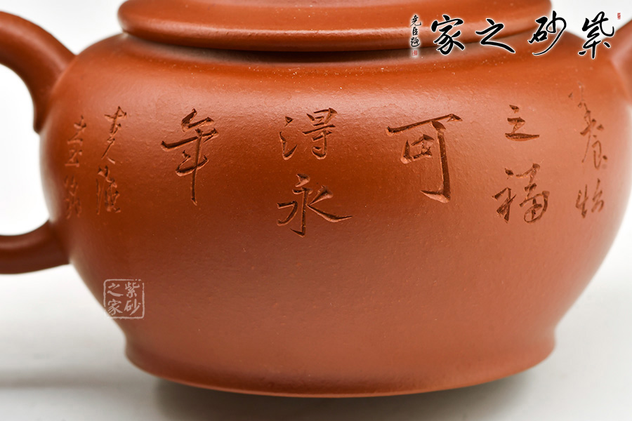 特點:質(zhì)感綿密、緊實細緻,持之扎實沉重、紅潤豔麗,泥中極品,無以倫比;泥胚含少許原礦顆粒,沖淋熱水后色變極大,呈紅中帶紫,養(yǎng)壺易現(xiàn)“包漿”之美。