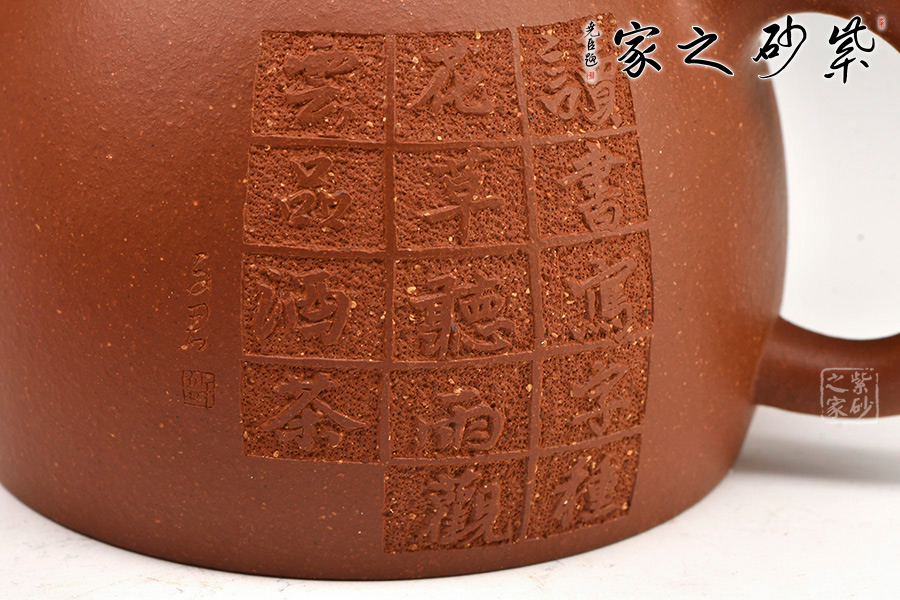 泥性:原礦因含緞泥、紅泥、紫泥等諸多共生礦,陶之后,于深沉之“橙紅色”底上,滿佈五彩斑斕的粗細、深淺之紅、黃星斑點。