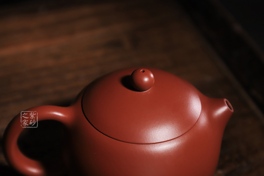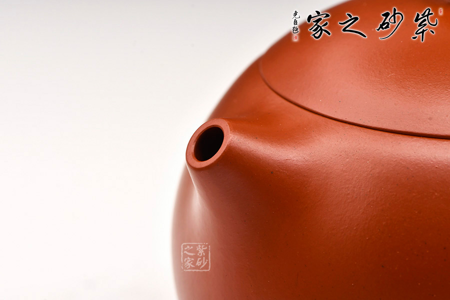 特點:質(zhì)感綿密、緊實細(xì)緻,持之扎實沉重、紅潤豔麗,泥中極品,無以倫比;泥胚含少許原礦顆粒,沖淋熱水后色變極大,呈紅中帶紫,養(yǎng)壺易現(xiàn)“包漿”之美。