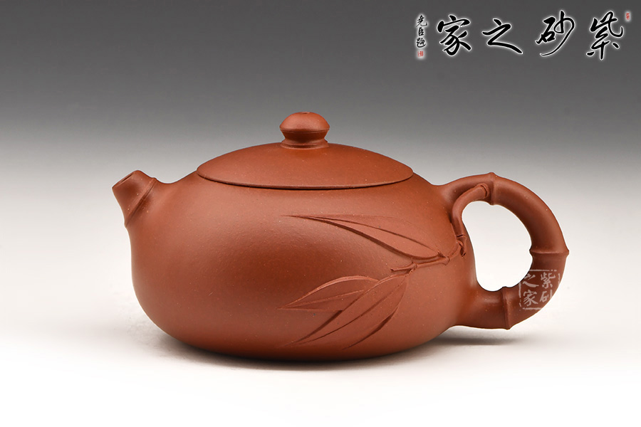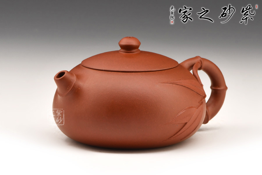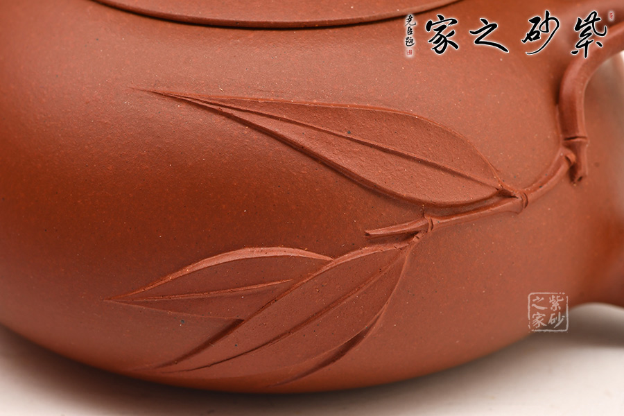 扁西施自有一份圓潤(rùn)和憨態(tài)。以竹節(jié)作短小挺翹的壺嘴,細(xì)出粗收的環(huán)把。把一側(cè)胥出竹葉裝飾壺身,充滿生機(jī)。圓潤(rùn)飽滿的壺身,截蓋,扁球形的壺鈕。造型簡(jiǎn)約,帶著竹的霽月清風(fēng)之氣,讓人愛(ài)不釋手。