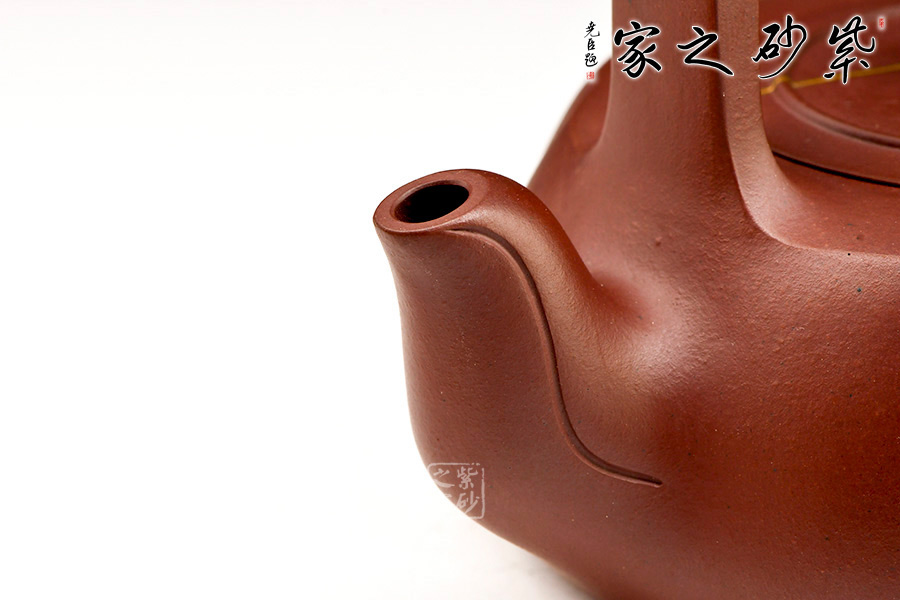 此作造型古樸,壺體飽滿,豐厚扁圓。平口,斜鼓腹,闊底,下腹略豐,短曲流,整器給人沉穩(wěn)之感。