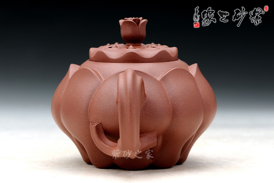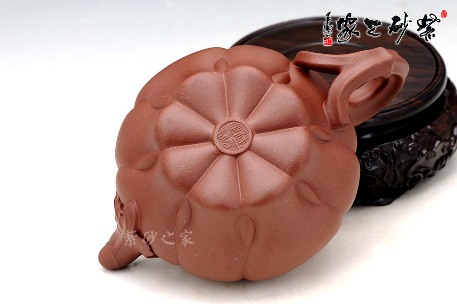此壺最為精彩之處莫過于壺身蓮花造型,八瓣蓮花相接而成的壺體飽滿勻稱,壺底收縮成八瓣形狀,在中心處收于一個(gè)圓心,刻上老師的印章,構(gòu)思精巧,值得收藏。