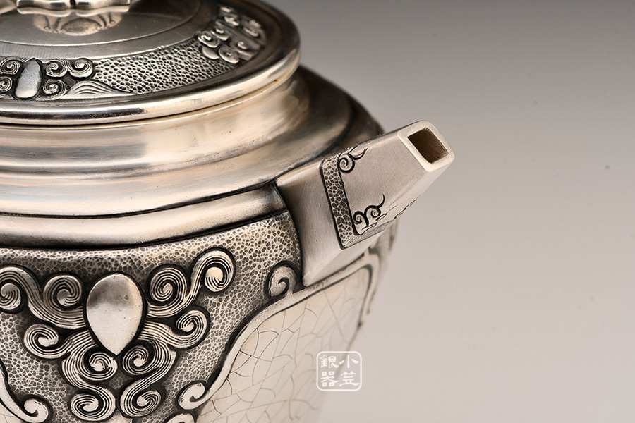 銀壺的制作是段六一對小爐匠傳統(tǒng)的傳承,也是金屬工藝的集大成。一張打、片打出等技術(shù),鏨刻、雕花、成形等工藝看似簡單,實則需要深厚的工藝基礎。銀板多半毫則太后,銀板少半毫則太薄。收口不到位則銀壺出水不流暢,鏨刻少了藝術(shù)功底則暗淡無光。從佛像到佛塔,從藏刀到到壁畫,段六一40年來對工藝的苛求最終在銀壺上得以集合。正是由于工藝的繁復和精準,手工藝人們才說“做好了銀壺,才是一個合格的手藝人”。