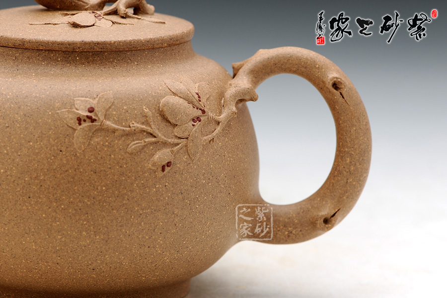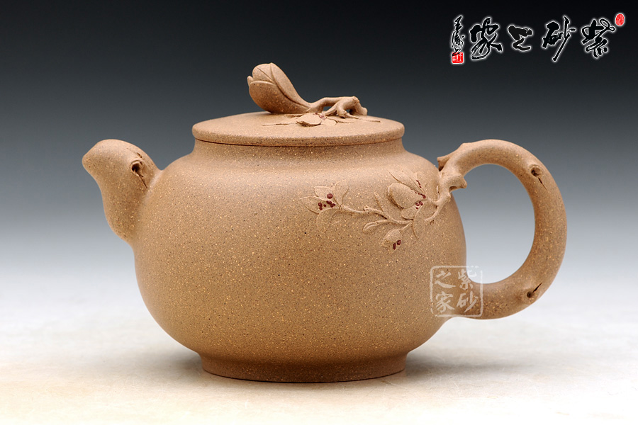壺嘴與壺把都是花枝造型,二彎流出水流暢,嘴頭鼓起,形成了細(xì)膩柔美的嘴口。