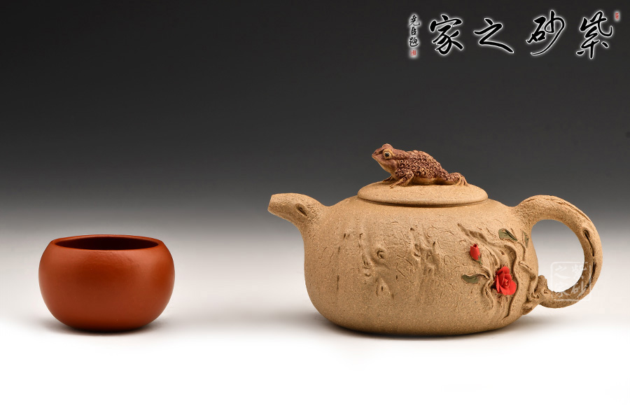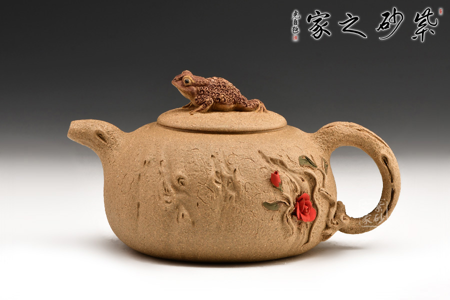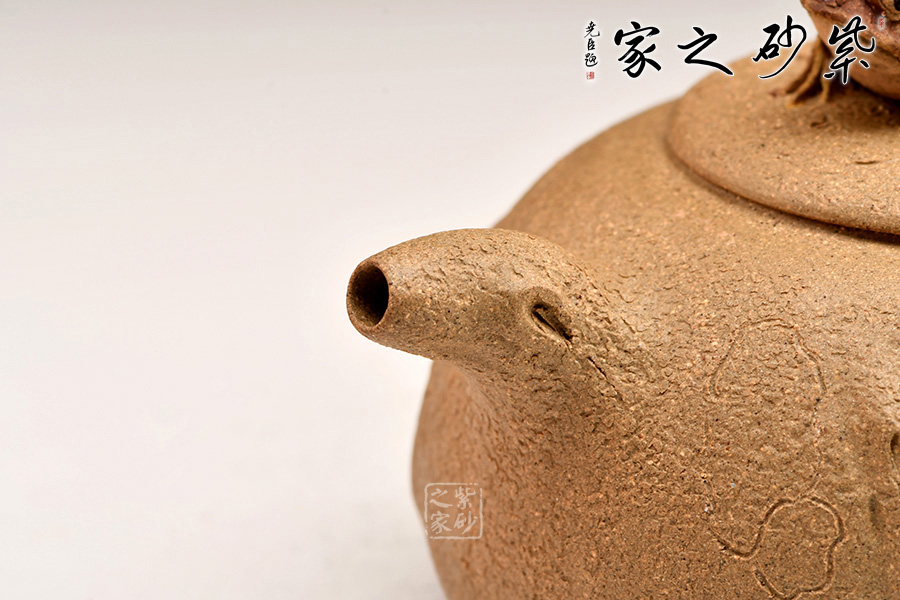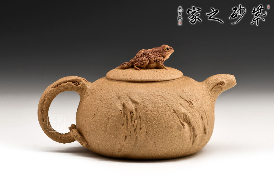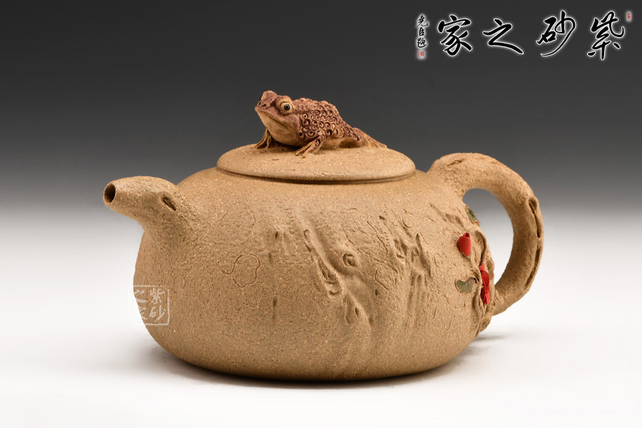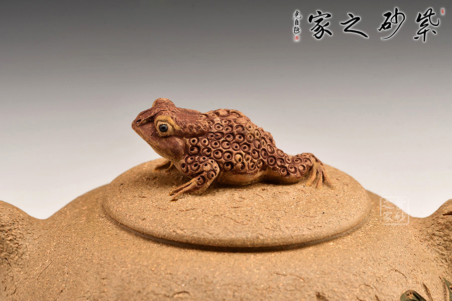 富貴金蟾紫砂壺其實(shí)是經(jīng)典紫砂壺型供春壺以金蟾做壺鈕。