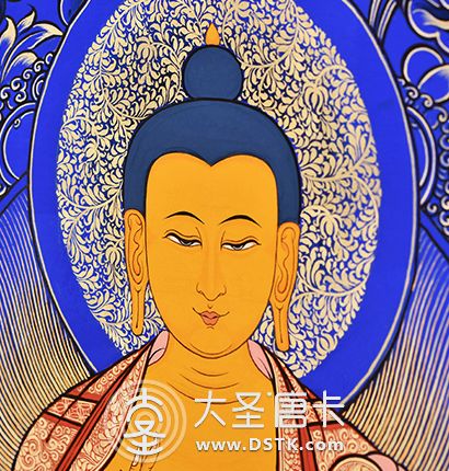 | 唐卡“師傅”開臉,筆路穩重流暢。體現完美天人相,可見佛菩薩慈眉善目,賦予唐卡畫像生的靈氣。 | 細節決定品質,點睛之筆不到位影響整體美觀,五官比例不協調,面目呆板,缺乏靈氣。 |