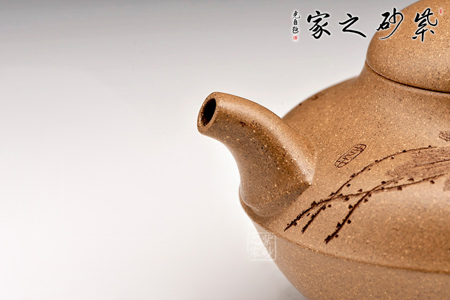 老段泥原礦稱之“老團泥”,產于江蘇省宜興黃龍山,原礦外觀近白色,夾深綠斑點;除可當泥胚製陶外,亦可磨篩成細顆粒,作為調砂效果之用;燒成后呈次鵝黃色,略含極少數(shù)紅色斑點。另一緞泥之原礦為本山綠泥,產地亦為黃龍山,原礦呈綠灰色,是紫砂泥中夾層中的夾脂,燒成后呈米黃色調。泥料內所含顆粒較大結構疏松器身明顯成雙氣孔結構,空氣對流順暢;日久使用,漸露鋒芒,養(yǎng)成變化甚大為養(yǎng)壺之最佳器材。泡茶好喝,贊不絕口!早期泥料調配跟早期窯爐所升溫度較低溫,在一般緞泥產品會近期來所用窯爐為高溫窯,所燒成之緞泥壺,可輕易提升至所須溫度,而真正達到較高的結晶,絕不吐黑!
