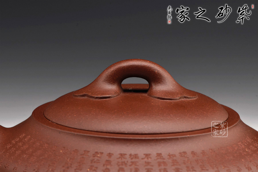 一捺底壺底簡(jiǎn)潔,如意鈕與蓋渾然一體,整個(gè)壺在扁圓中求韻味。