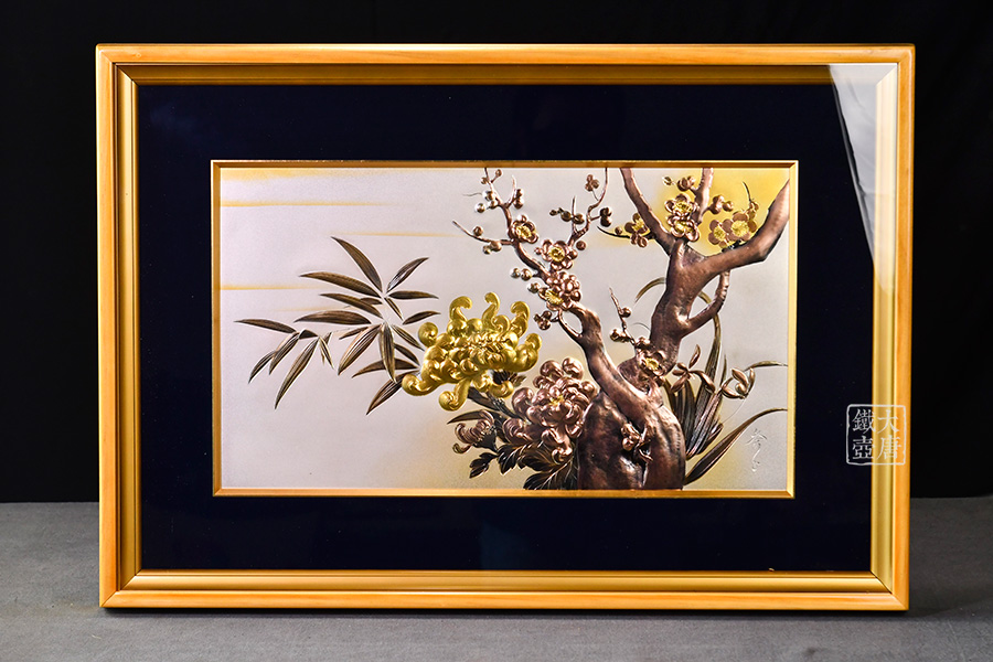 雕金銅板畫 四君子 大 [ 編號:103687 ]