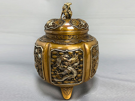 產(chǎn)地:高岡 堂口:高陵金壽堂 材質(zhì):銅 工藝:鏨刻 容量: 重量: