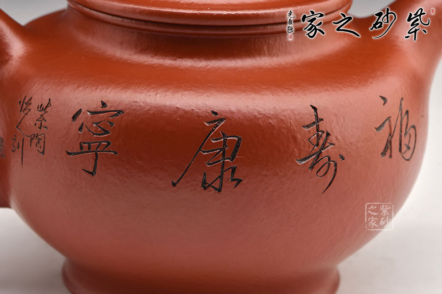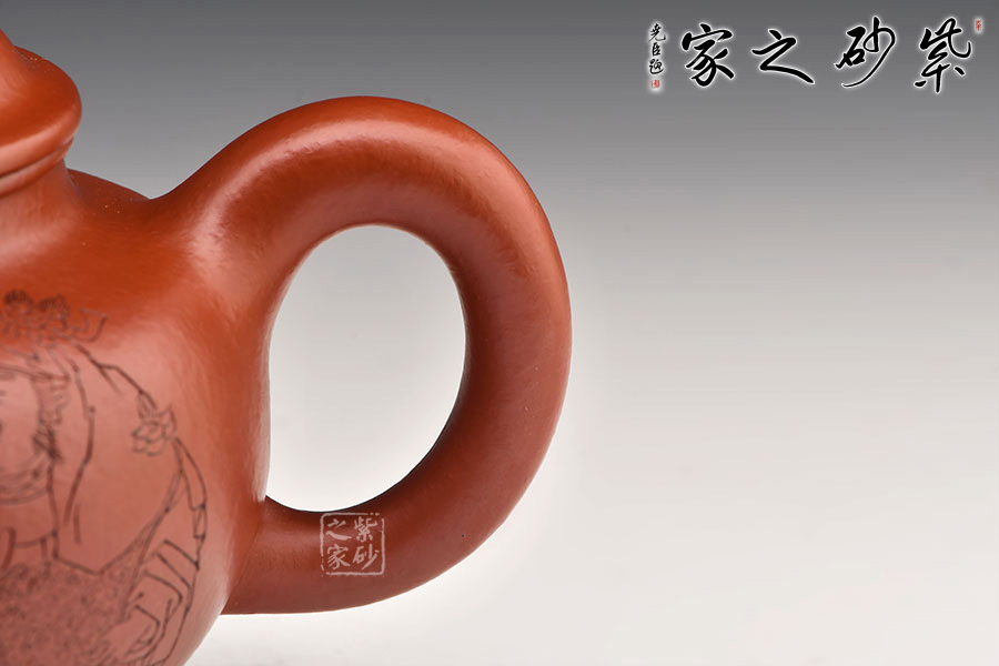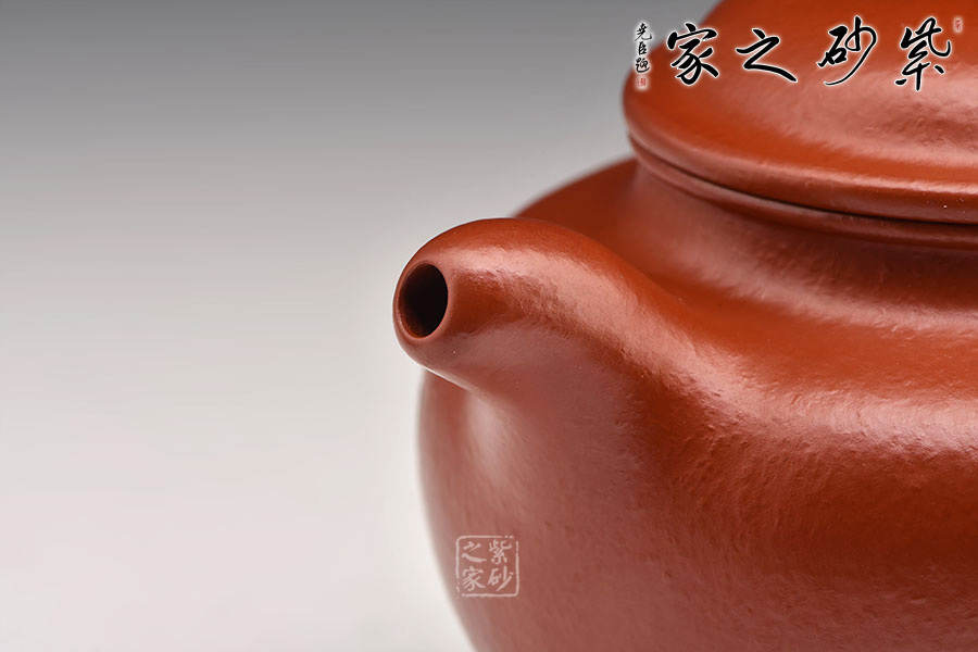 此壺有著渾圓的壺身,半圓的壺蓋,圓鈕,線條流暢,比例得當(dāng),不費(fèi)吹灰之力,壓蓋略微渾厚,呈鎖蓋之勢,點(diǎn)線之間見出魅力,彎流嘴胥出,在端頭下壓,柔美之姿明顯,壺柄略微上抬之后優(yōu)雅滑落而下,形成一條圓潤飽滿的弧線,樸雅大方。